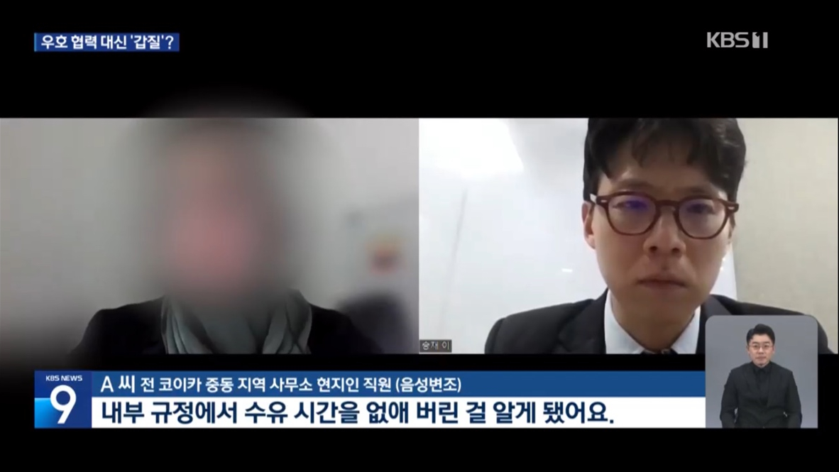 [A 씨/전 코이카 중동 지역 사무소 현지인 직원/음성변조 : "내부 규정에서 수유 시간을 없애버린 걸 알게 됐어요."]