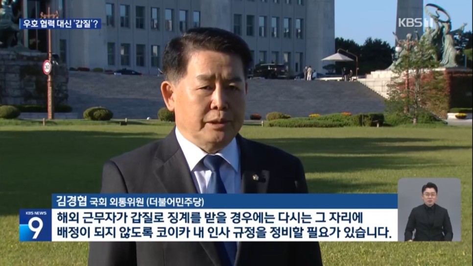 [김경협/국회 외통위원/더불어민주당 : "해외 근무자가 갑질로 징계를 받을 경우에는 다시는 그 자리에 배정이 되지 않도록 코이카 내 인사 규정을 정비할 필요가 있습니다."]
