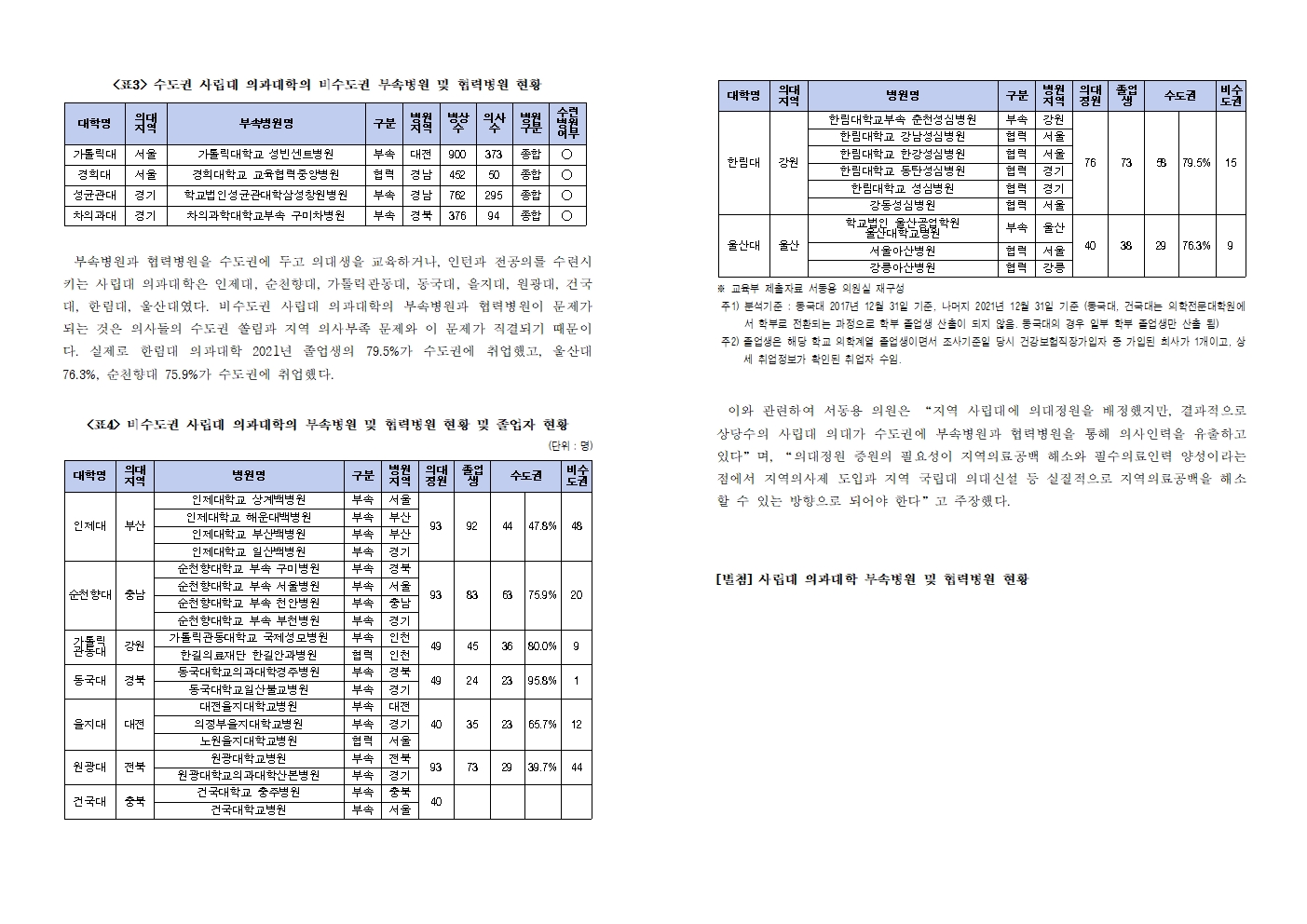 [서동용 의원] 의사 수도권 유출 원인은 지역 사립대의 부속·협력병원 수도권 운영