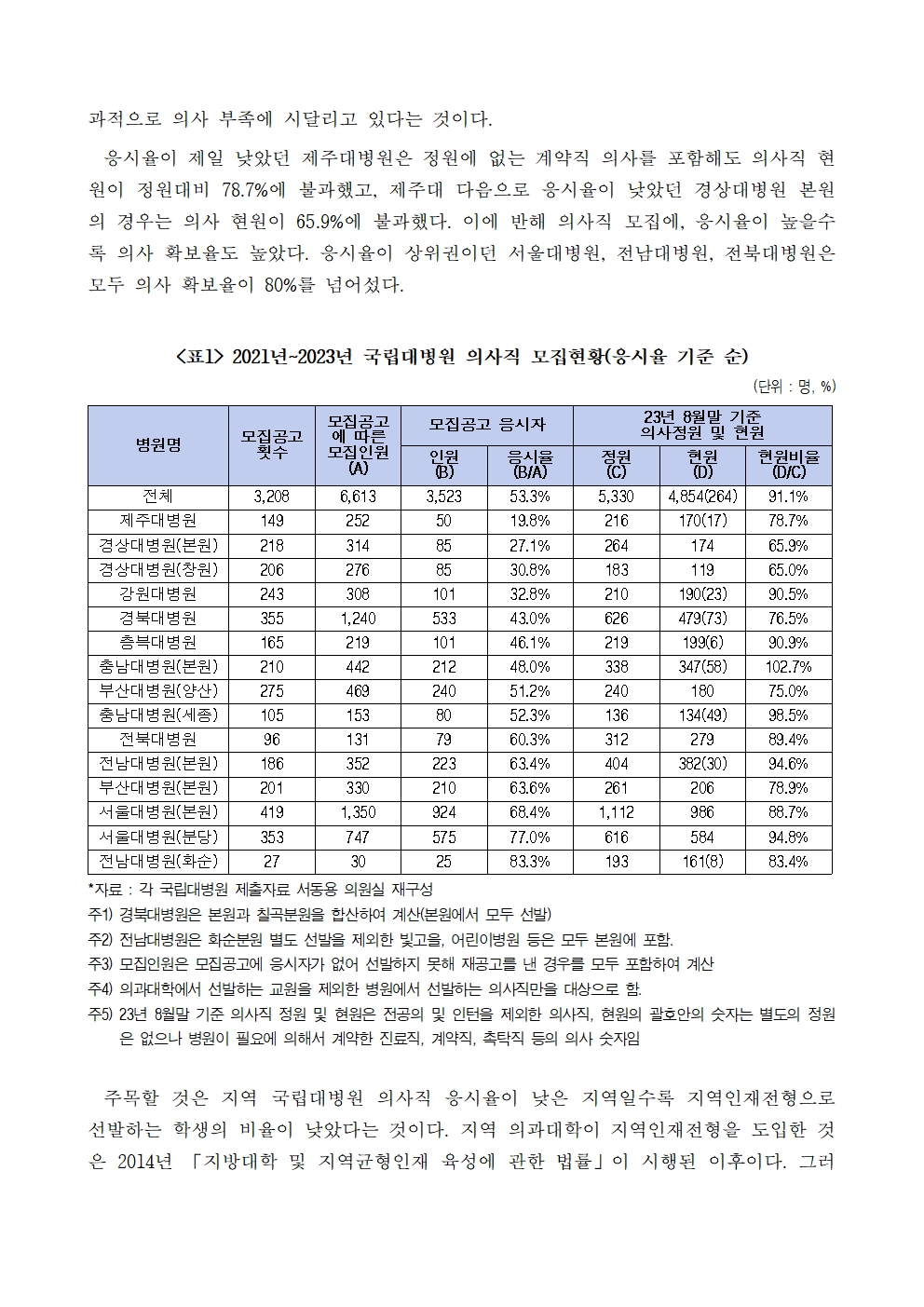 231026_국감_서동용_국립대병원_3년간_3208회_6613명_모집공고_냈지만_응시율은_53_3퍼센트.hwp