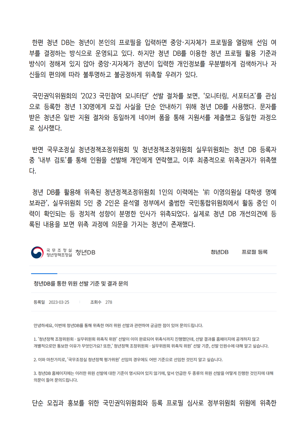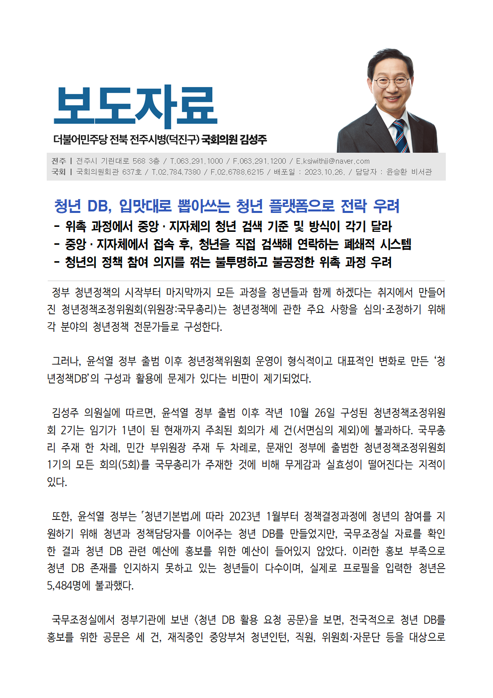 231026_보도자료_청년정책조정위원회_DB_등_문제점_김성주의원실.hwp
