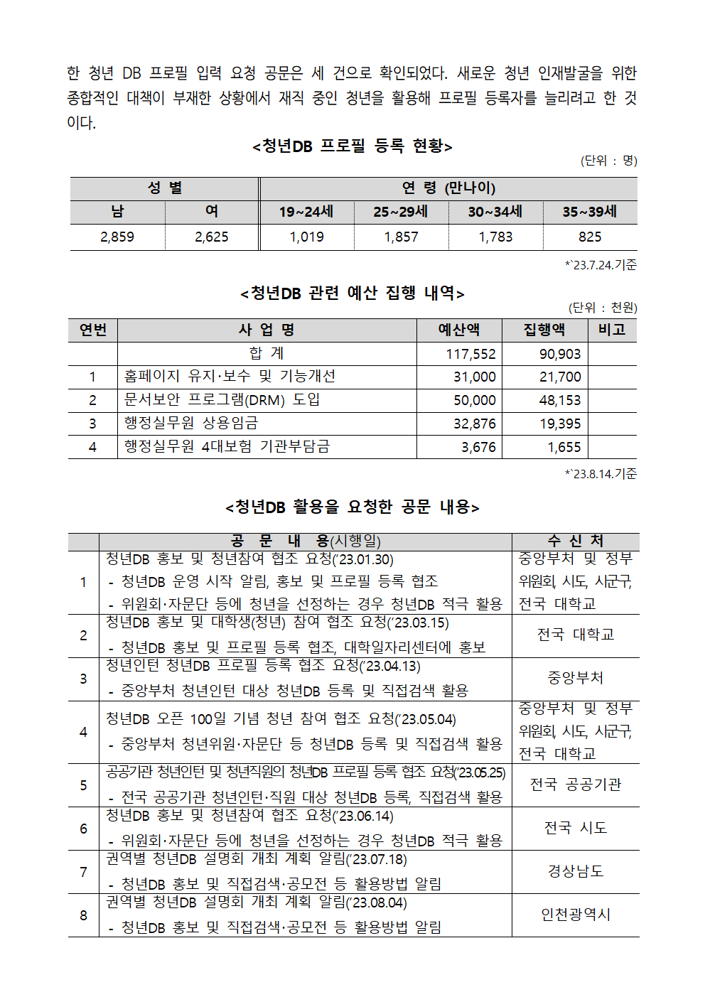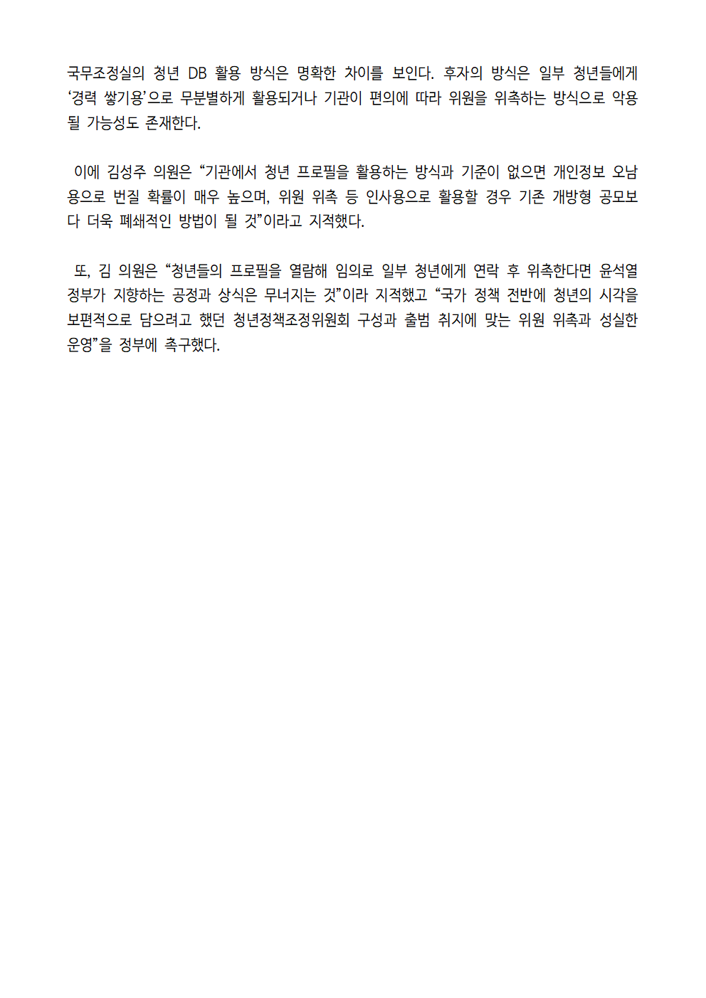 [김성주의원 보도자료] 청년 DB, 입맛대로 뽑아쓰는 청년 플랫폼으로 전락 우려