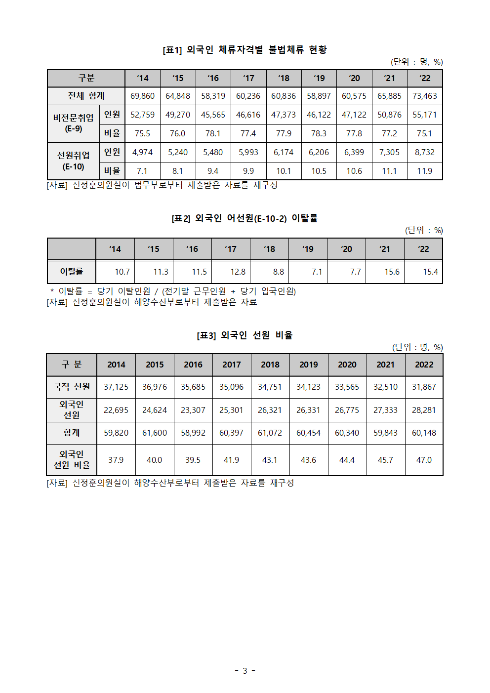 [신정훈 의원실 보도자료]지난해 선원취업 비자 외국인 중 불법체류자 8,732명... 8년새 1.8배 ↑