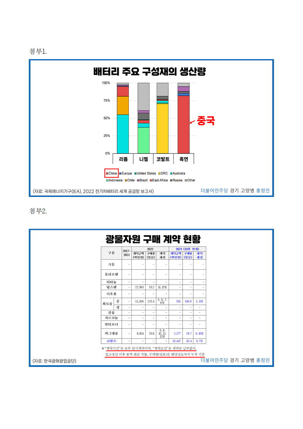 [홍정민 의원 보도자료] 공급망 다변화 성과 저조, 핵심광물 확보위해 중국과 협력 강화해야