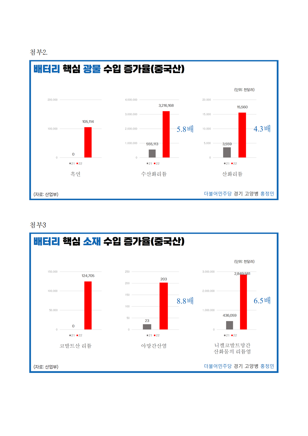 [홍정민 의원 보도자료] 공급망 다변화 성과 저조, 핵심광물 확보위해 중국과 협력 강화해야