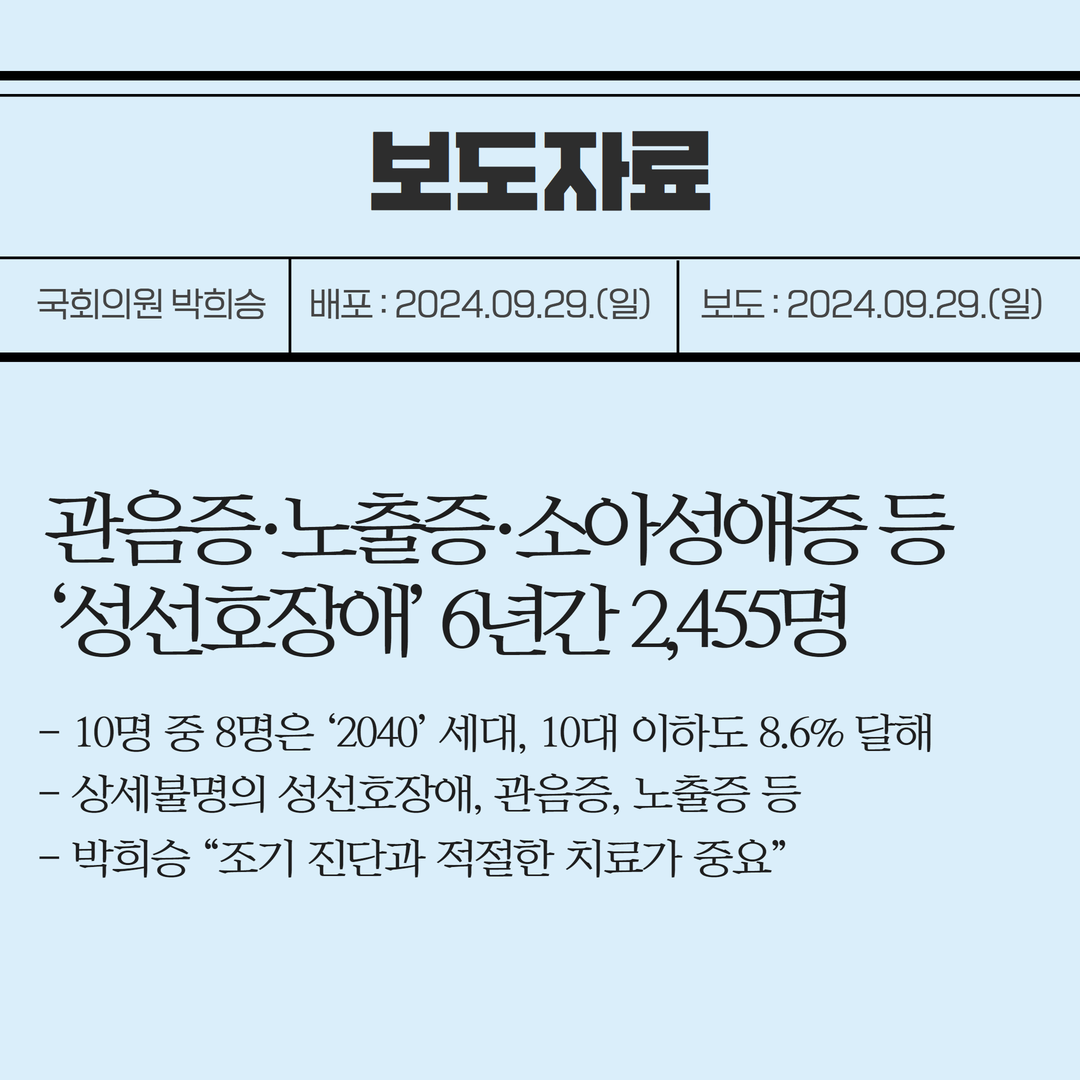 [국회의원 박희승 보도자료] 관음증·노출증·소아성애증 등 ‘성선호장애’ 6년간 2,455명