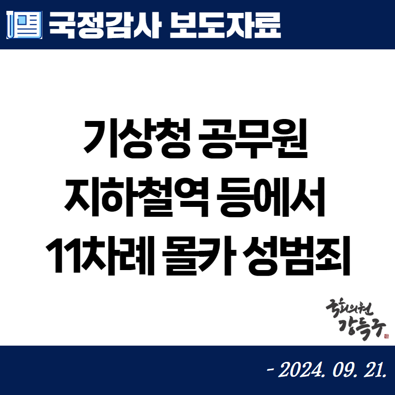 [국회의원 강득구] 기상청 공무원 지하철역 등에서 11차례 몰카 성범죄