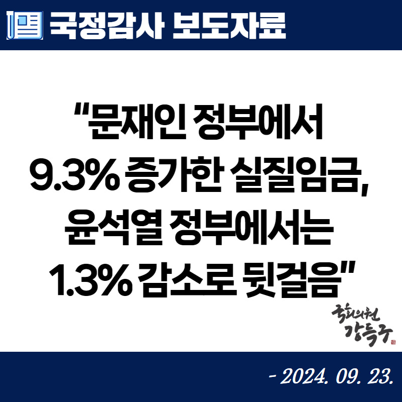강득구 의원, “문재인 정부에서 9.3% 증가한 실질임금, 윤석열 정부에서는 1.3% 감소로 뒷걸음”