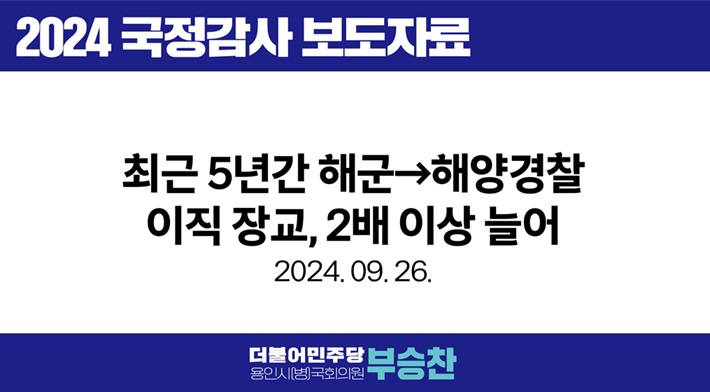[국회의원 부승찬] 최근 5년간 해군→해양경찰 이직 장교, 2배 이상 늘어