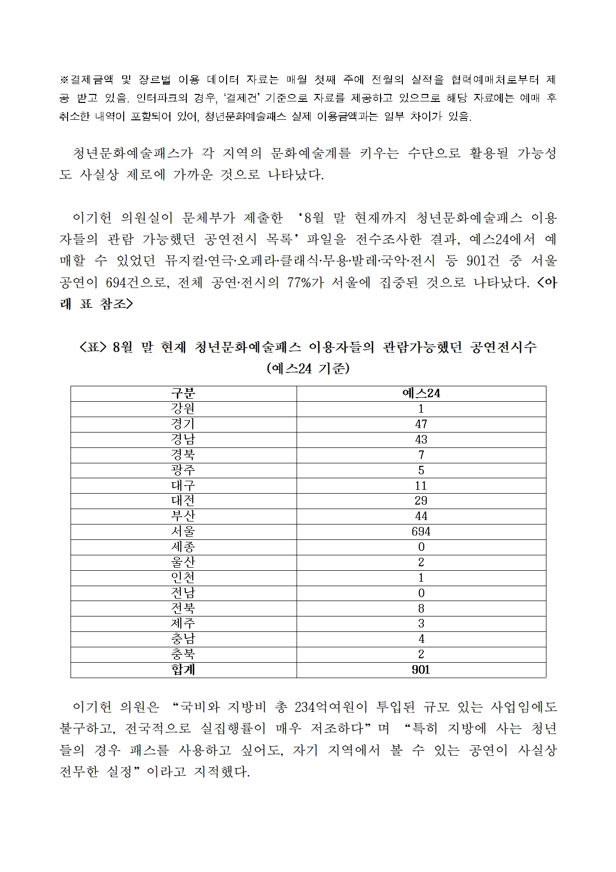 (최종)이기헌의원실_국감보도자료청년문화예술패스 발급률 72%인데 공연장 간 청년들은 없어.hwp