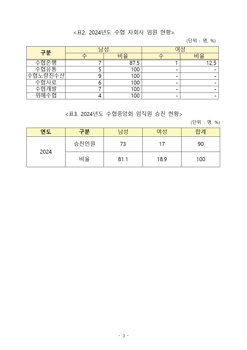 보도자료_송옥주 의원 수협중앙회 임원 30명 중 여성은 단 1명 자회사 6곳 살펴봐도 여성 임원 1명에 그쳐.hwp