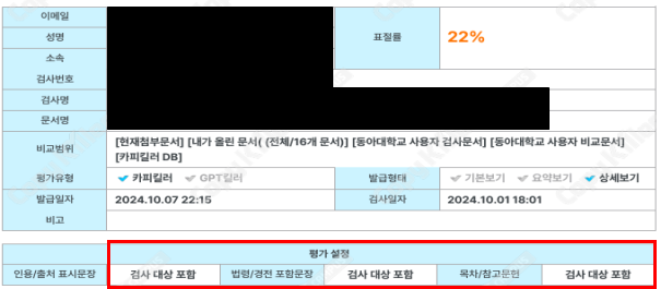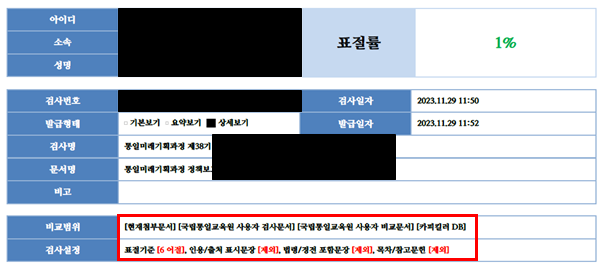 그림 5 국립통일교육원의 표절검사 기준 및 결과