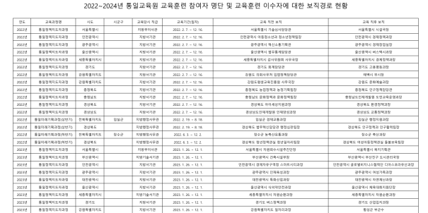 그러나 이재강 의원실이 행정안전부(지방인사제도과)를 통해 최근 3년간 해당 과정과 통일미래기획과정을 수료한 교육 이수생들의 파견부처 복귀 직후의 보직 경로를 확인한 결과, 이들은 짧게는 6개월에서 길게는 45주간 통일 관련 교육을 수료하였음에도 불구하고 교육 이수 직후 버스택시과장, 돌봄보육팀장, 체육대회지원단장, 자원순환과정 등으로 인사발령 나는 등 사실상 통일과 유관한 부서에 배치받은 인원도 전무했다.