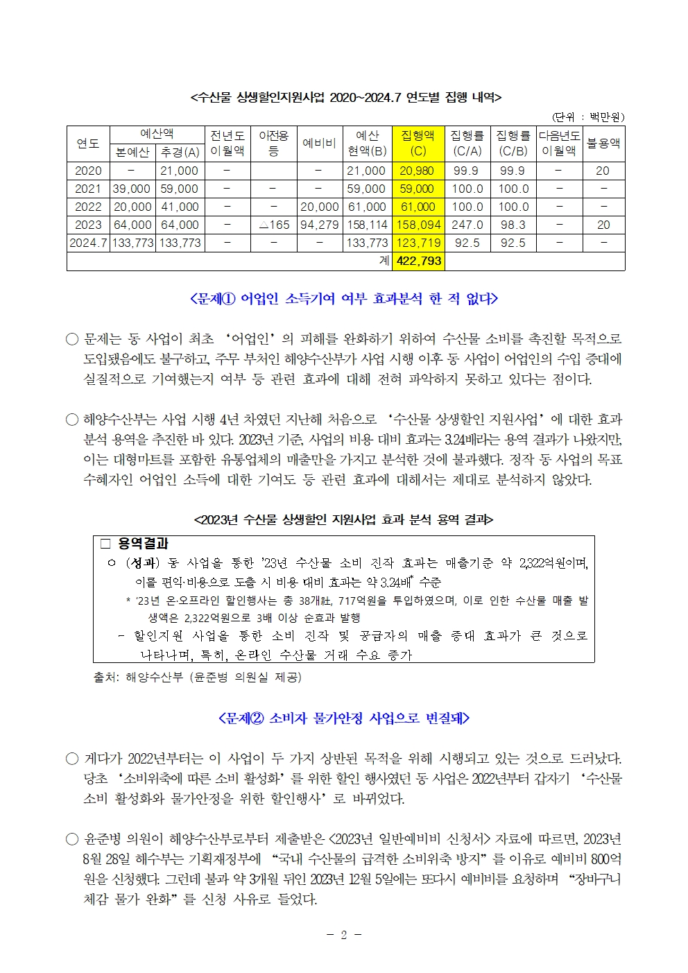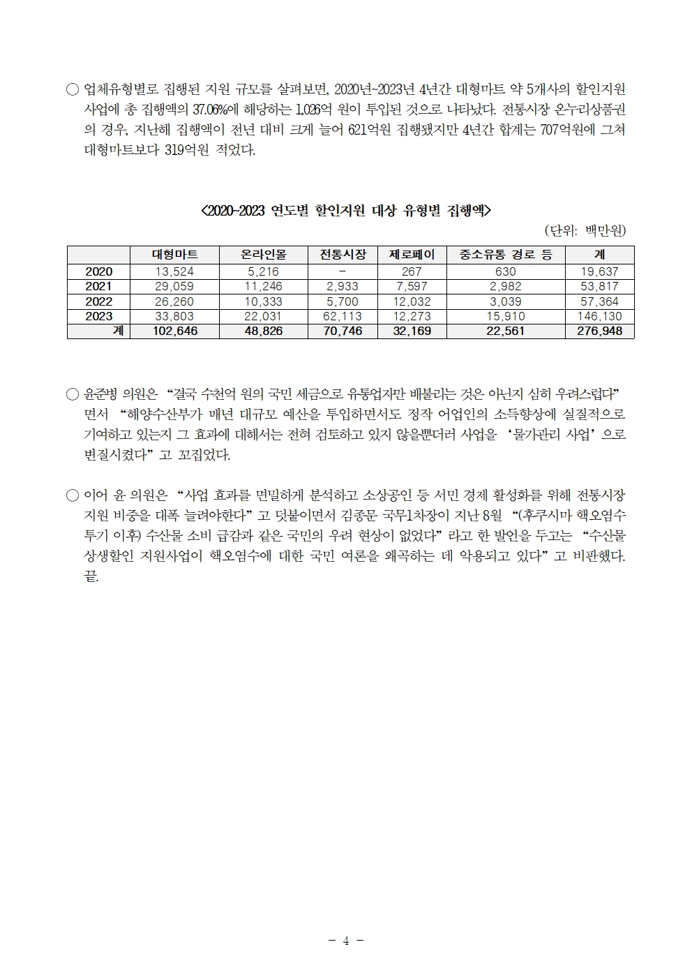 2401008 [윤준병 의원 국정감사 보도자료] 혈세 쏟아부은 수산물 할인사업_ 대형마트 수산물 매출 7천억 늘었다.hwp