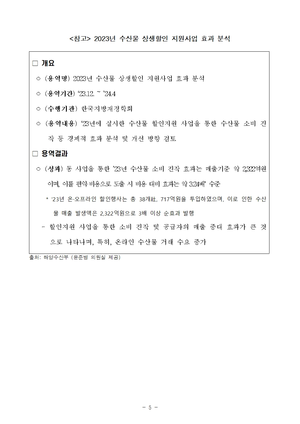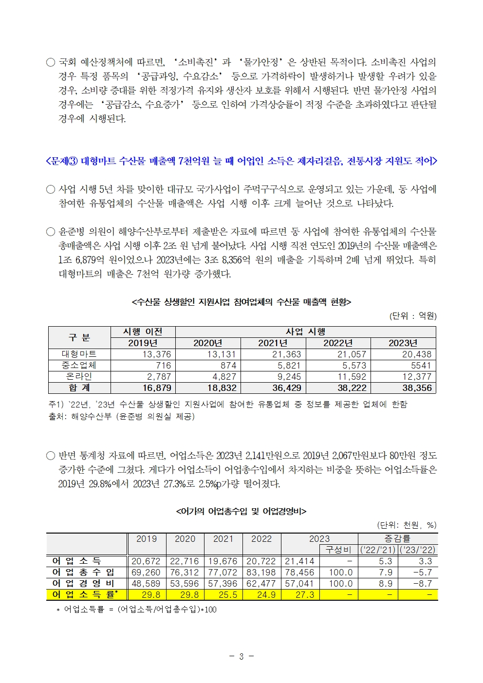 [윤준병 의원 국정감사 보도자료] 혈세 쏟아부은 수산물 할인사업_ 대형마트 수산물 매출 7천억 늘었다