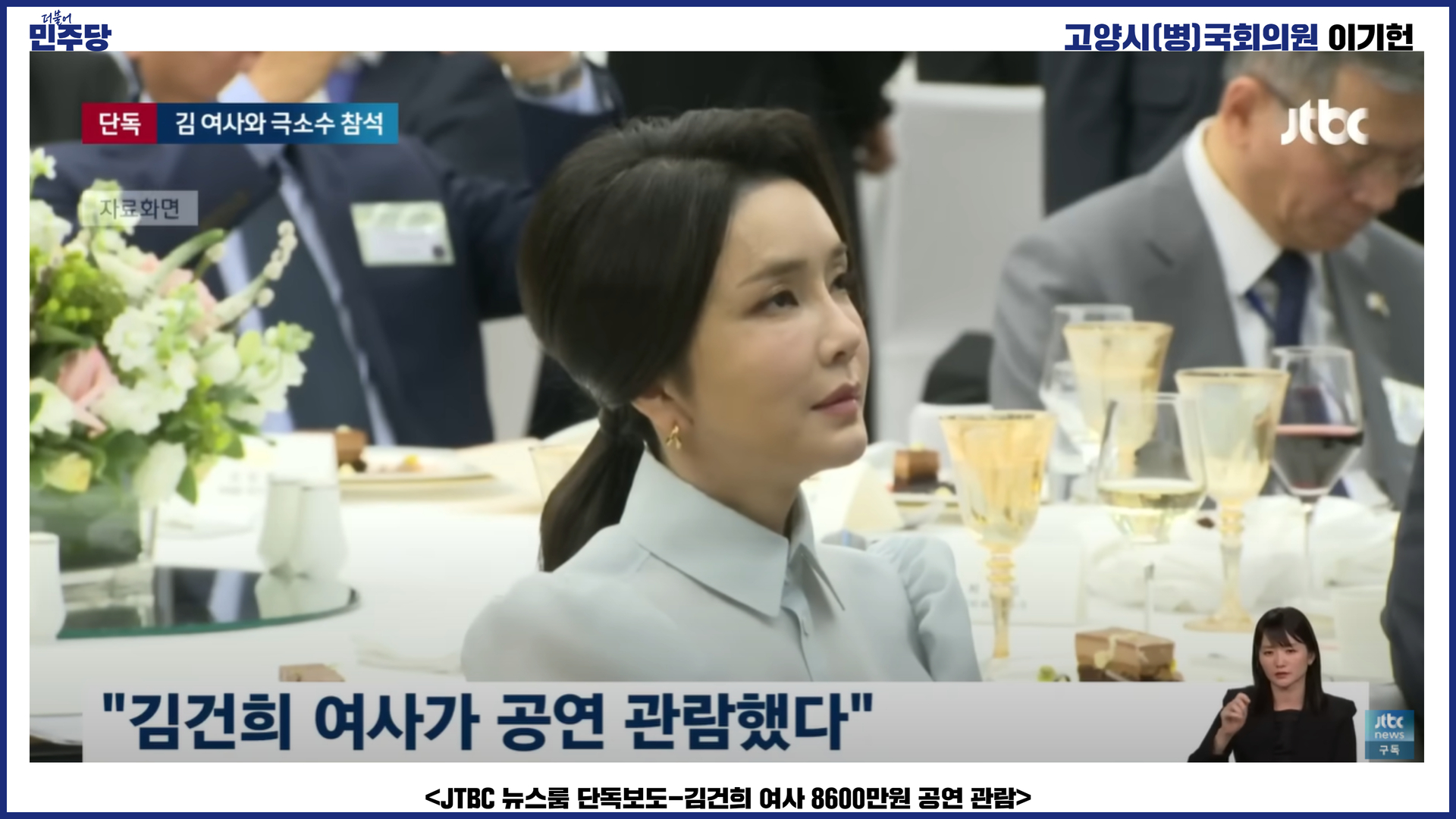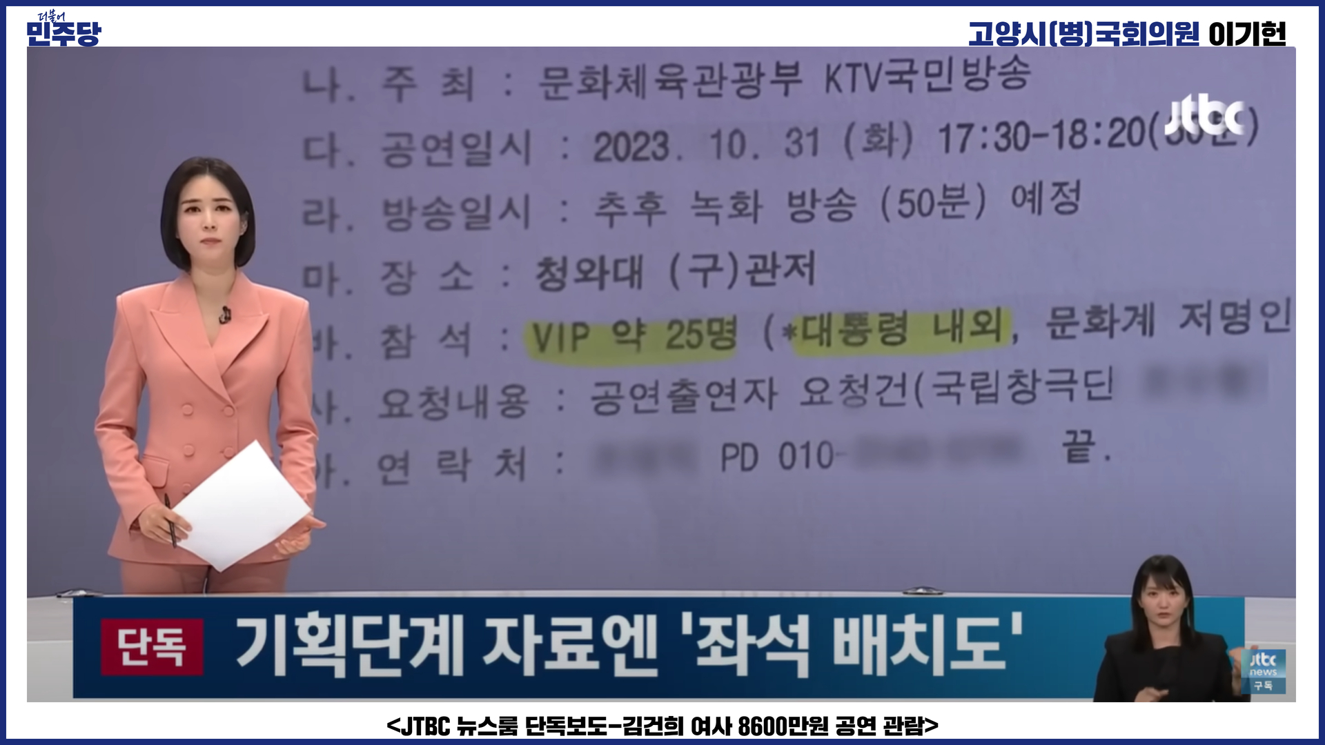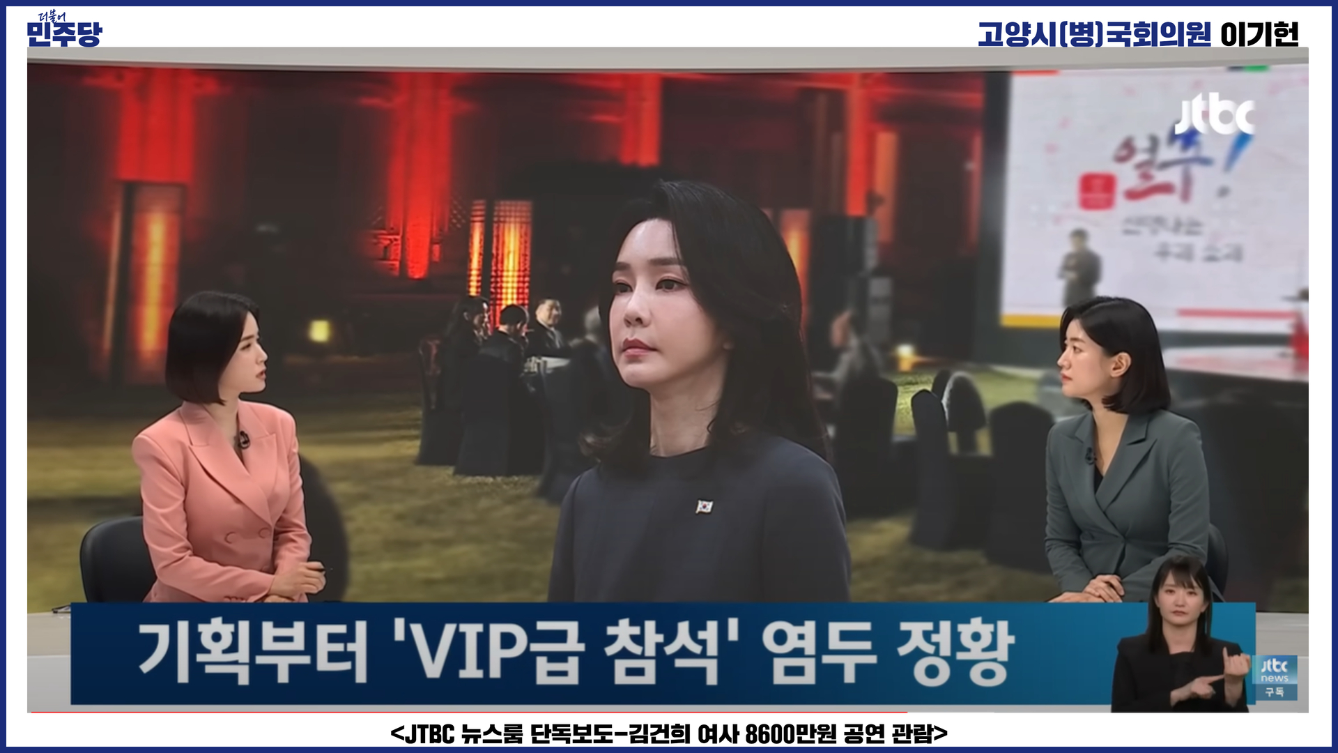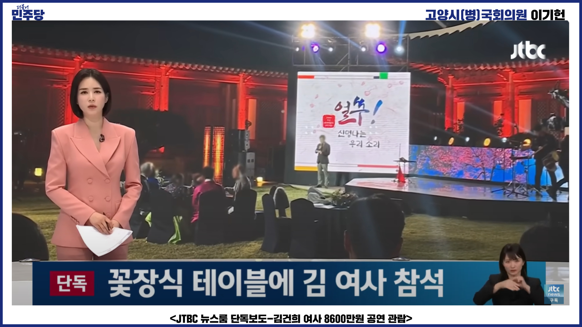 [이기헌 의원(고양시 병) 언론보도]<JTBC 뉴스룸>[단독]무관중이라던 8600만원 공연 녹화…꽃장식 관객석에 '김 여사' 있었다
