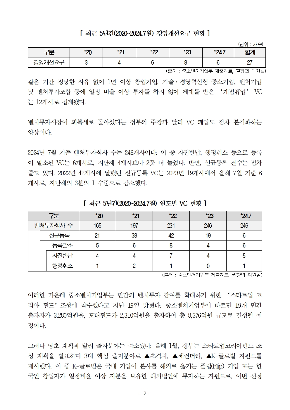 [국회의원 권향엽] 자본잠식에 폐업까지… 보릿고개 넘는 벤처투자업계