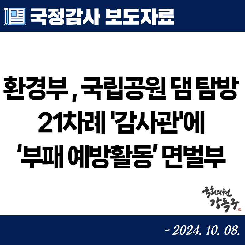 [국회의원 강득구] 환경부, 21차례 국립공원·댐 탐방 감사관에 ‘부패 예방활동’ 면벌부