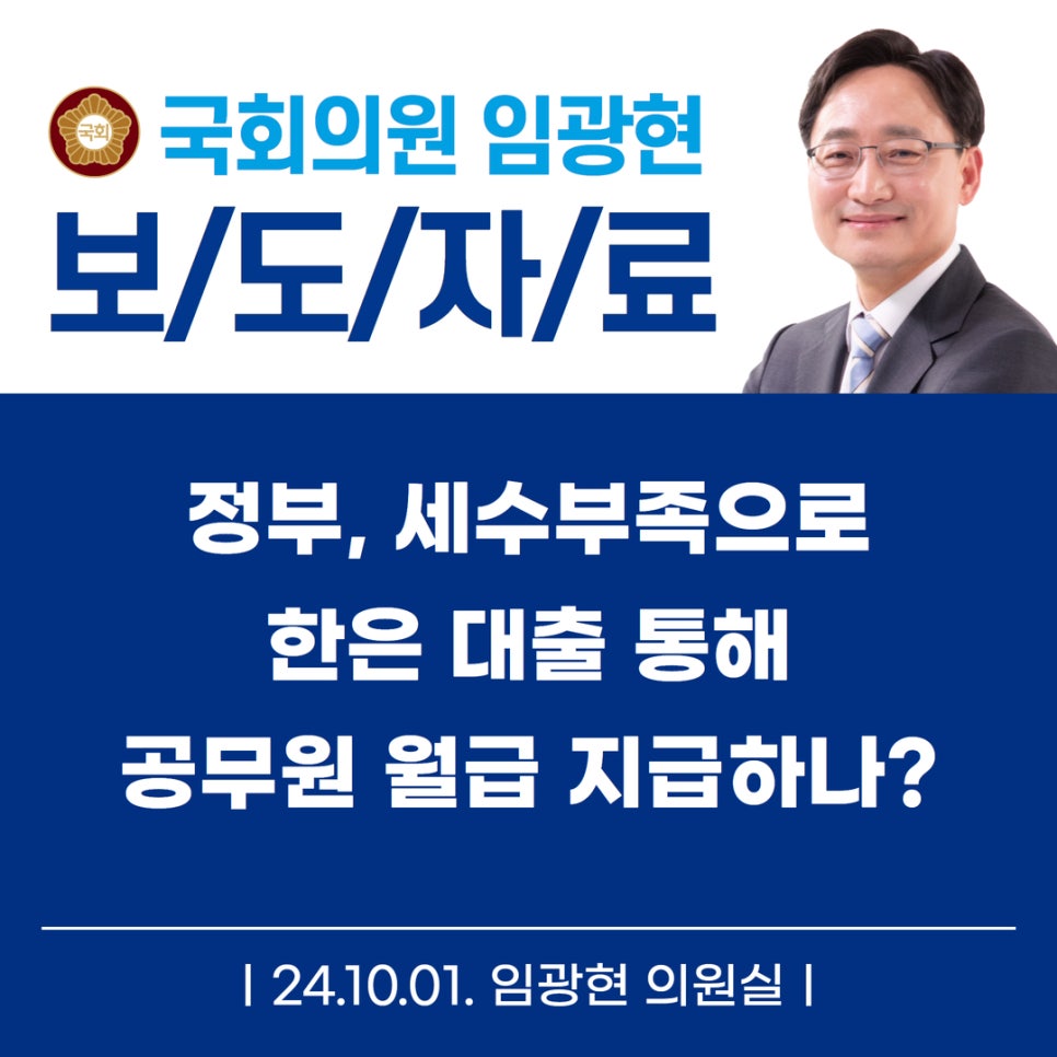 [임광현의원 국감 보도] 정부, 세수부족으로 한은 대출 통해 공무원 월급 지급하나?