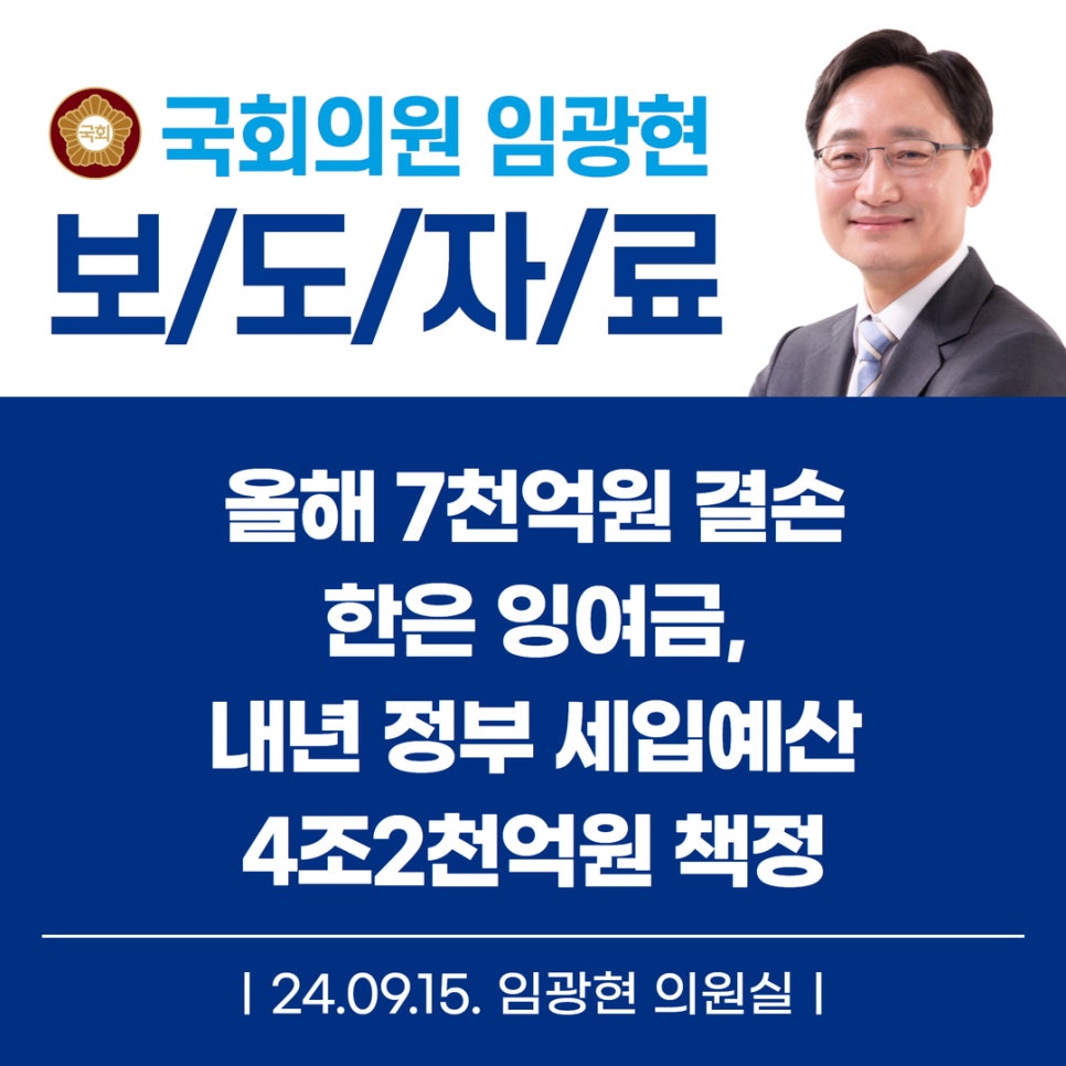 [임광현의원 국감 보도] 올해 7천억원 결손 한은 잉여금, 내년 정부 세입예산 4조2천억원 책정