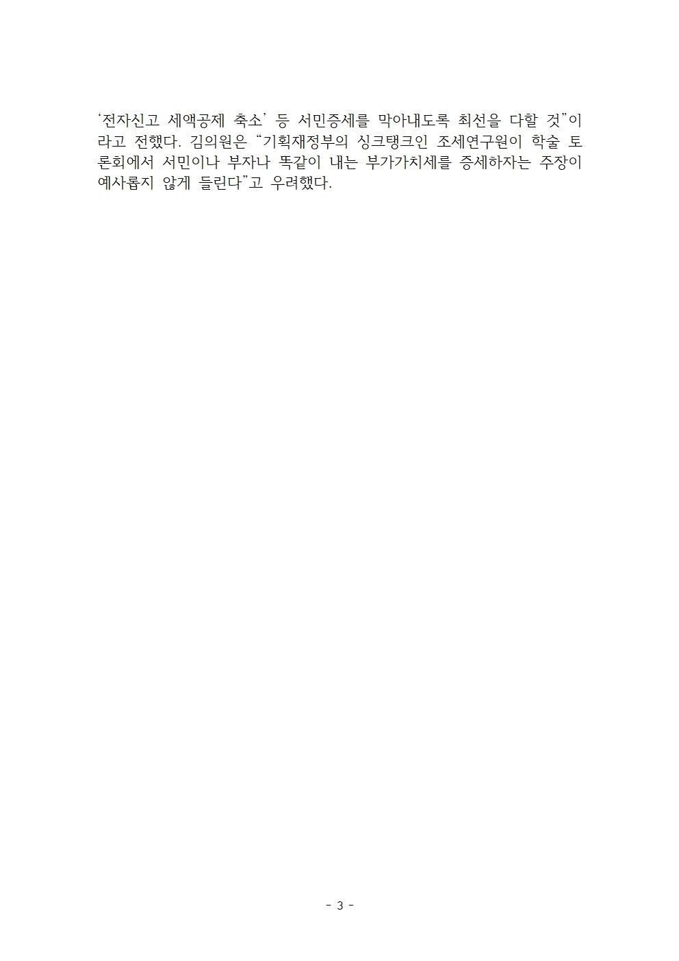 [김영환 의원(고양시 정) 보도자료] 김영환 의원, “尹정부, 세심한 부자감세, 무심한 서민증세”