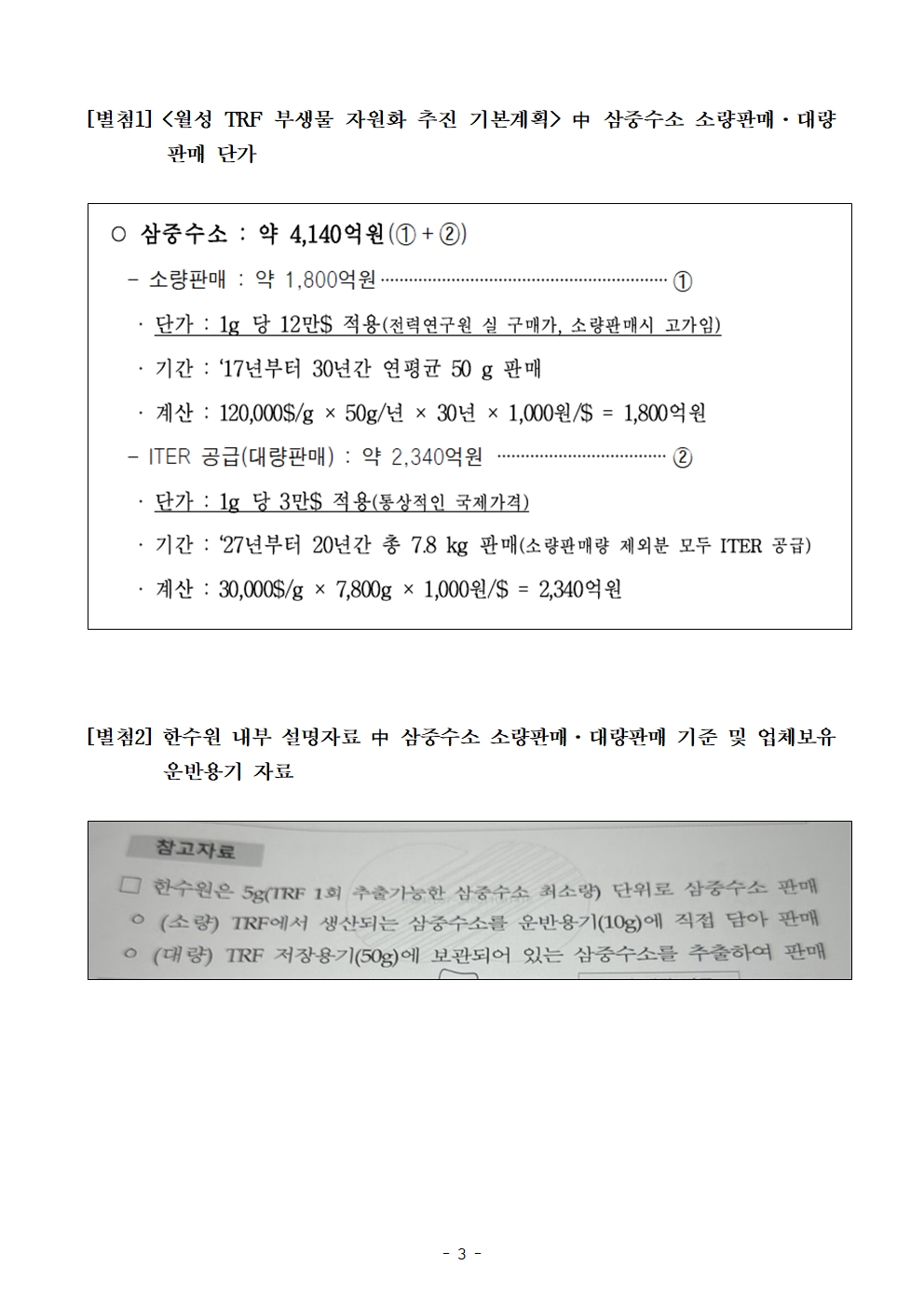 [국회의원 권향엽] 한수원 내부자료로 삼중수소 ‘특혜매각’ 정황 확인