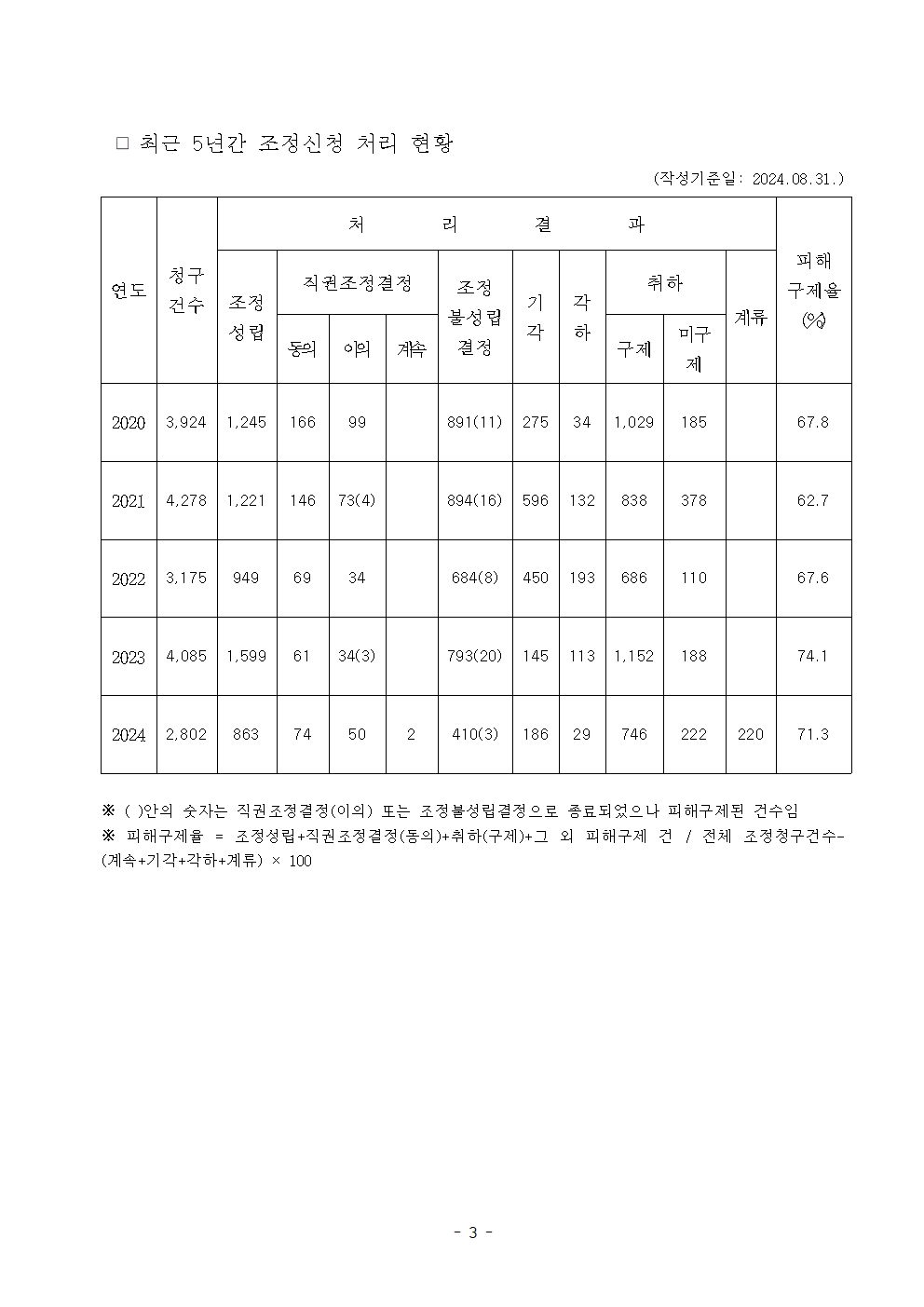 [국회의원 임오경 국감보도자료] 최근 5년간 언론중재위 조정신청건수 1만8264건, 평균 피해구제율 68.7%