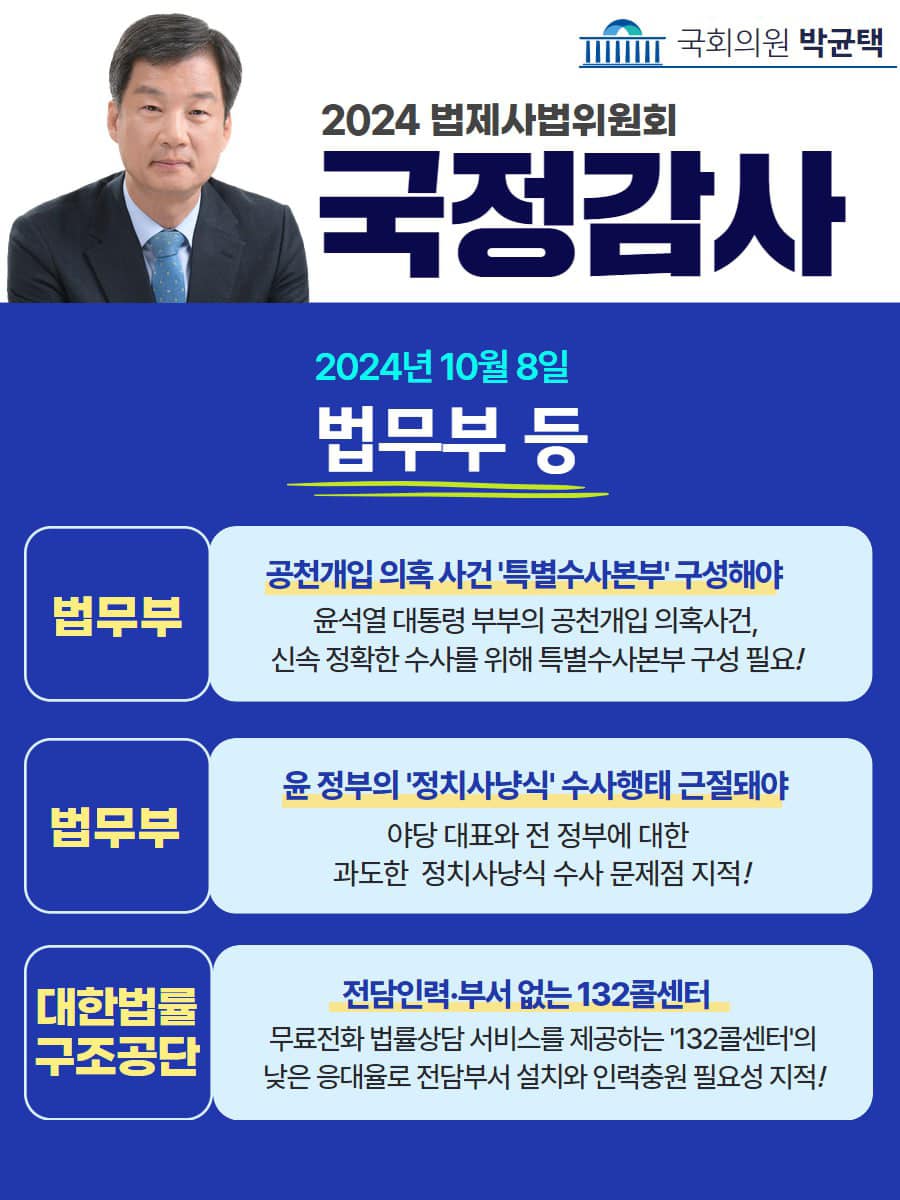 [국회의원 박균택] 국정감사 1일차(10/07) 카드뉴스