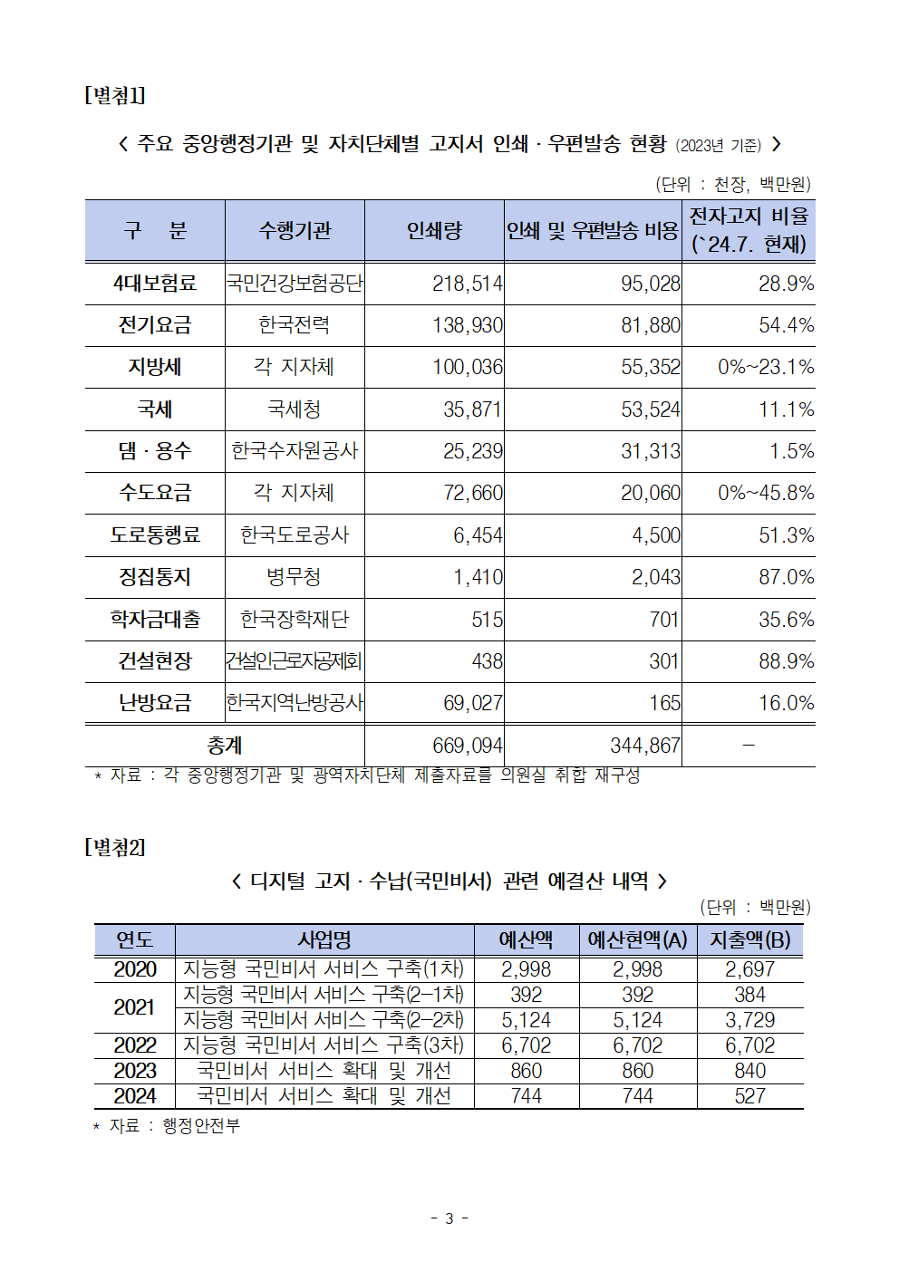 [국회의원 한병도 국정감사] 수천억 들여 인쇄·발송해 쓰레기통으로…지방세 등 공공요금 전자고지 보급 ‘답보’