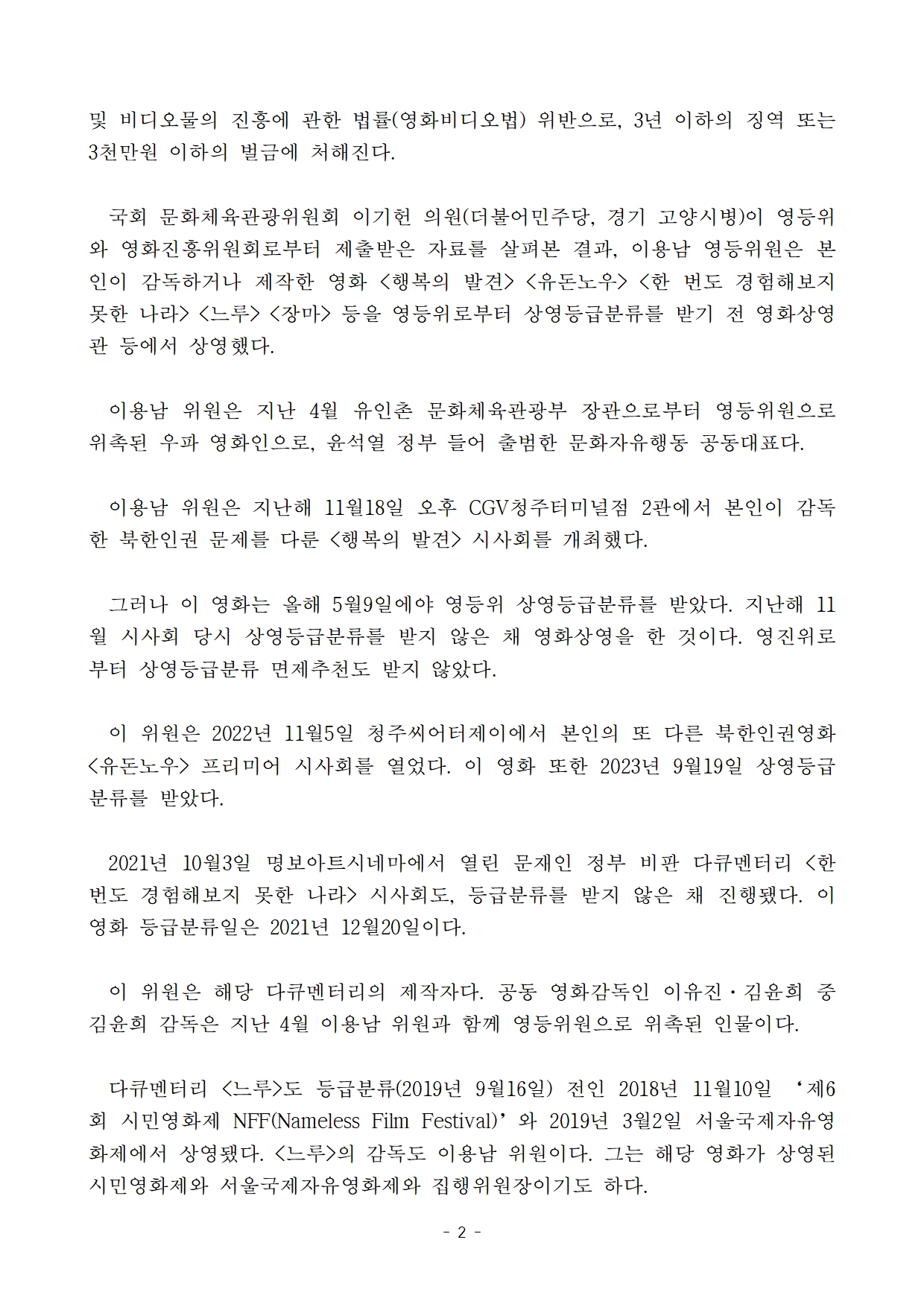 [이기헌 의원(고양시 병) 보도자료]이용남 영상물등급위원 상습적 법 위반 논란