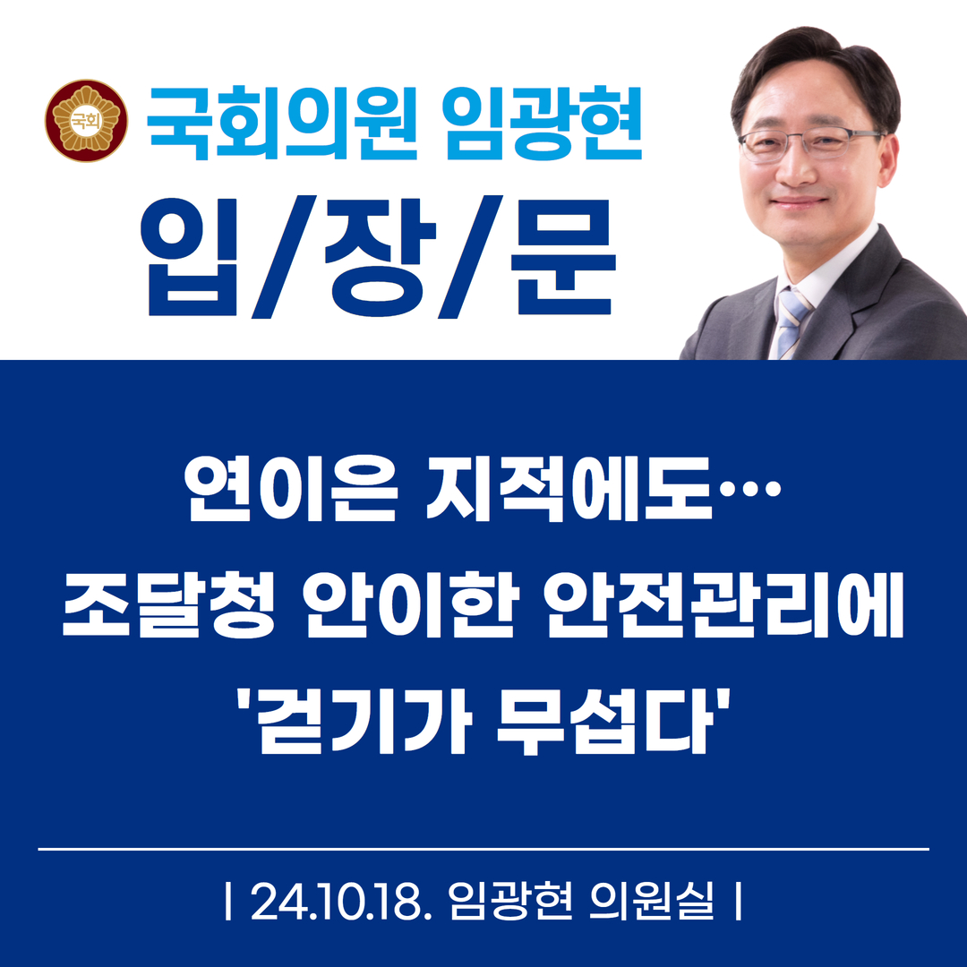[임광현의원 국감 보도] 연이은 지적에도…조달청의 안이한 안전관리에 ‘걷기가 무섭다’
