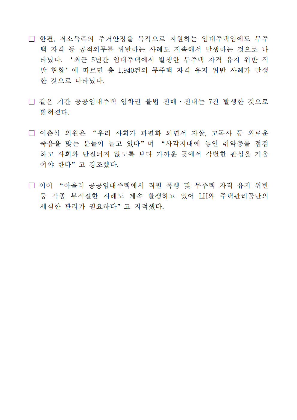 240909_이춘석 의원_ 최근 5년간 공공임대주택 자살·고독사 405건 발생.hwp