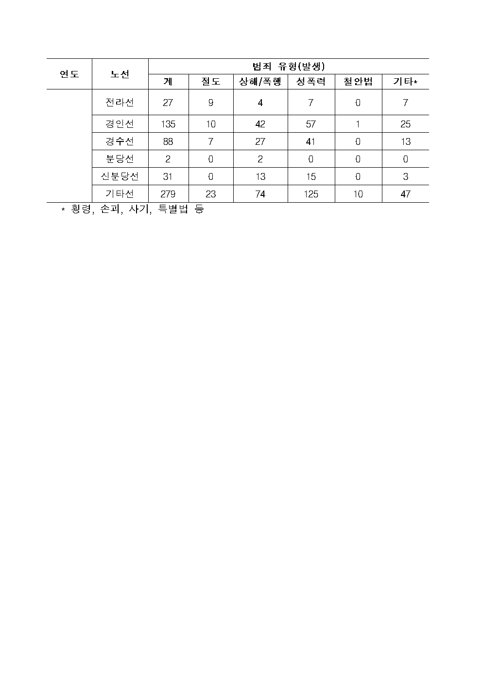 [이춘석 의원 국정감사 보도자료] 이춘석 의원, 철도시설 및 열차 내 범죄 매년 평균 2,500여 건 발생…. 성폭력이 최다