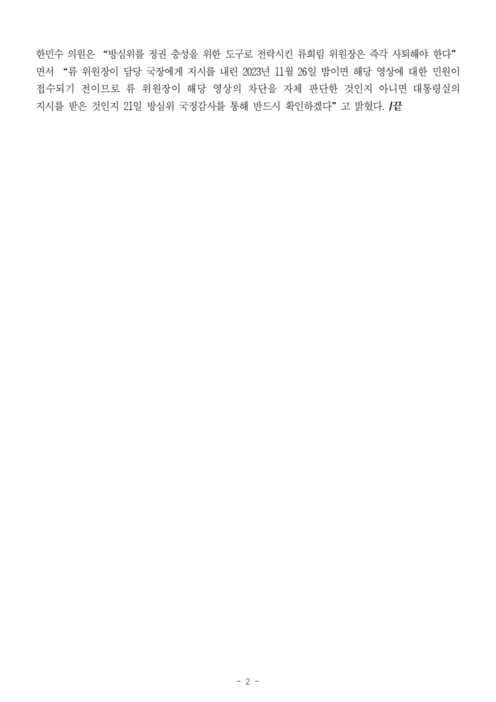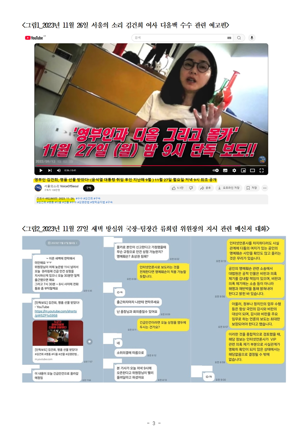 [국회의원 한민수] 류희림 방심위원장, 김건희 여사 디올백 수수 유튜브 영상 원천차단 시도했다