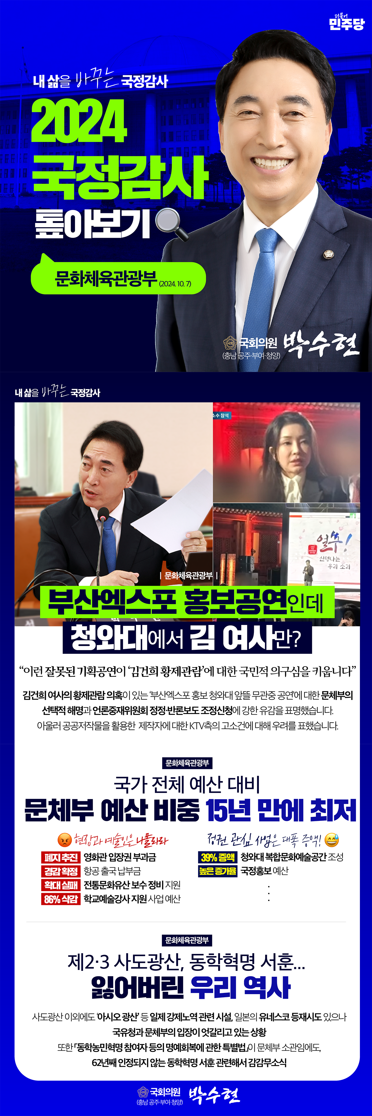 [박수현국회의원카드뉴스] 2024 국정감사 톺아보기 | 문화체육관광부