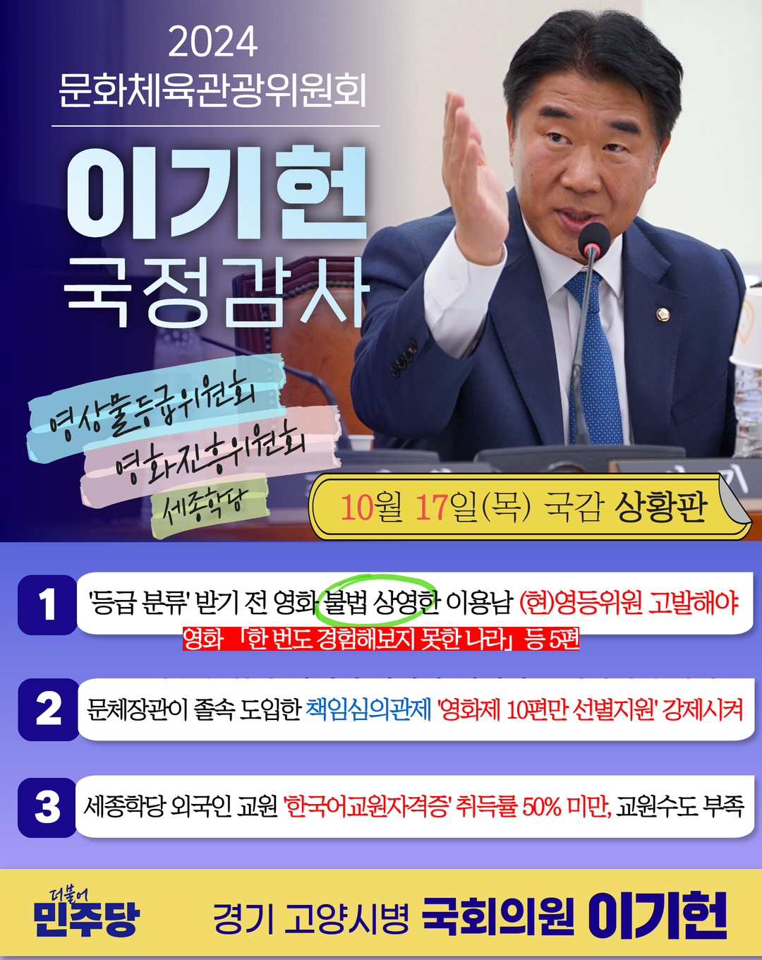 【이기헌 2024 문체위 국감】 4일차 상황판