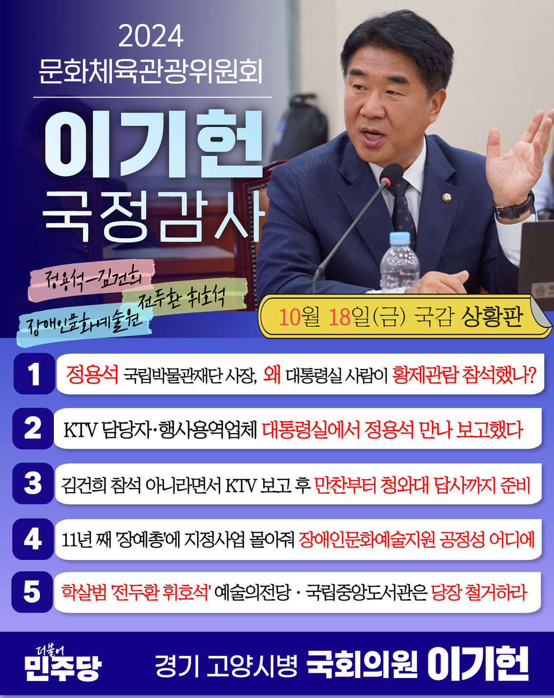 【이기헌 2024 문체위 국감】 5일차 상황판