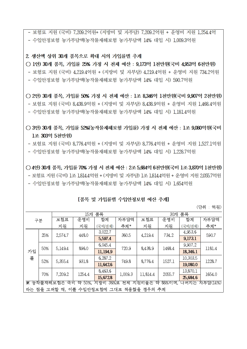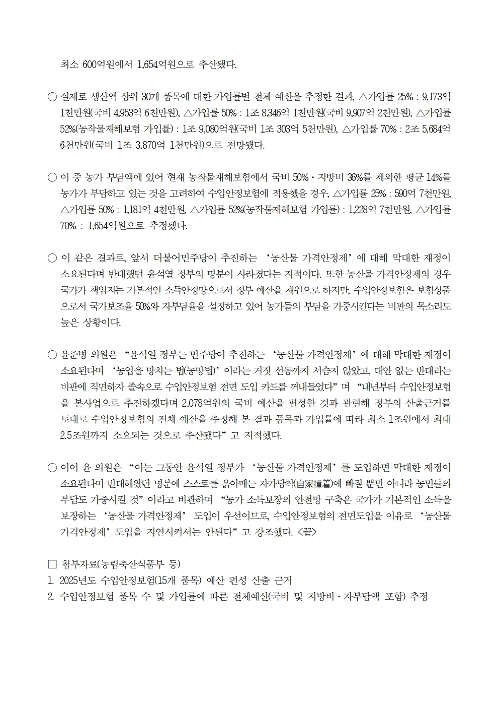 [윤준병 의원 국정감사 보도자료] 수입안정보험 2,5조원·농가부담 1,600억 추정!