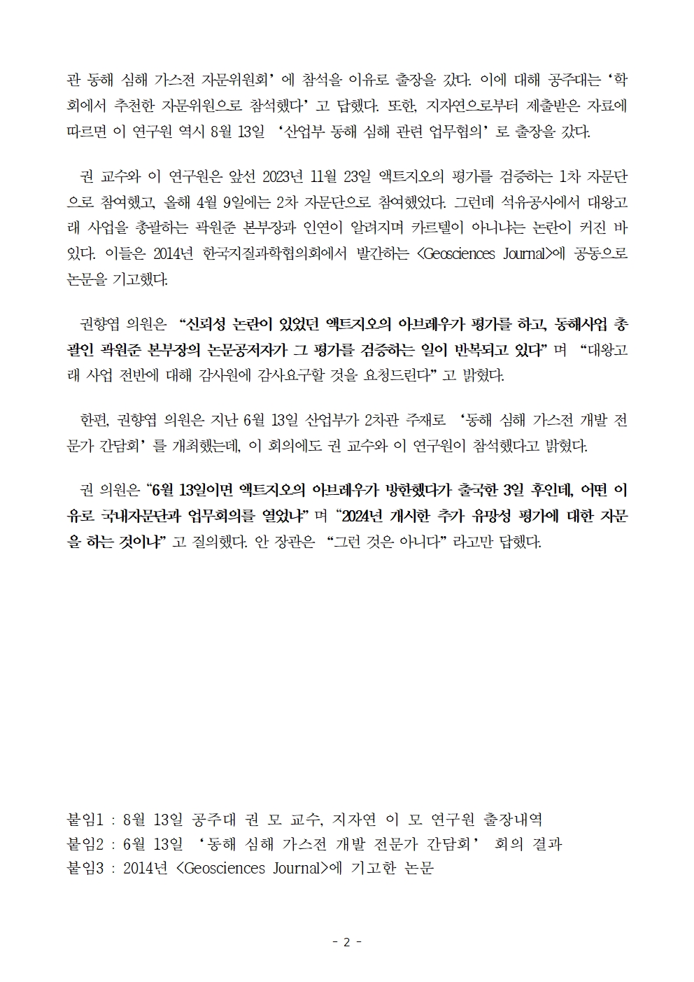 [국회의원 권향엽] "석유公, 내규 준수해 1월 대왕고래 최종위치 확정, 3월 세부 시추계획 수립"