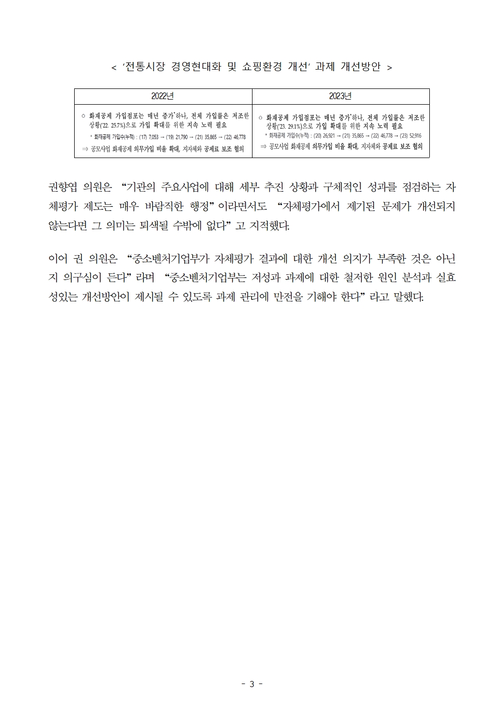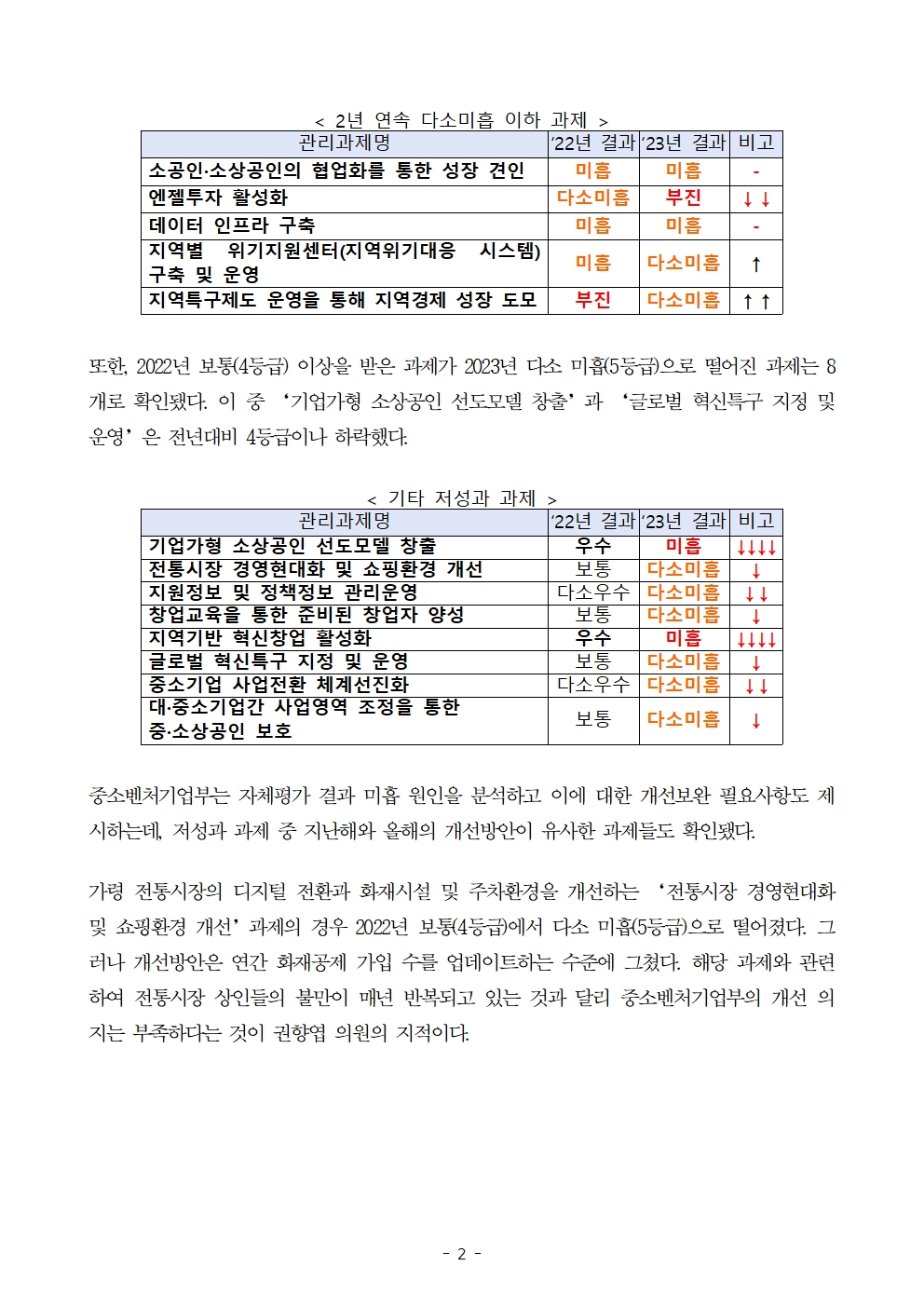 [국회의원 권향엽] 중소벤처기업부 주요사업 자체평가 결과 개선 의지 부족