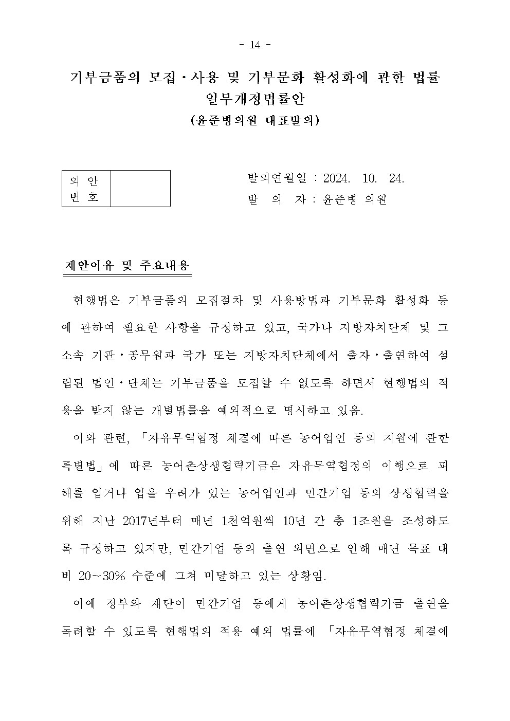 241025 [윤준병 의원 국정감사 보도자료] 윤준병 의원_ 국정감사 후속입법 ‘농어촌상생협력기금 조성 활성화 3법’ 발의!.hwp