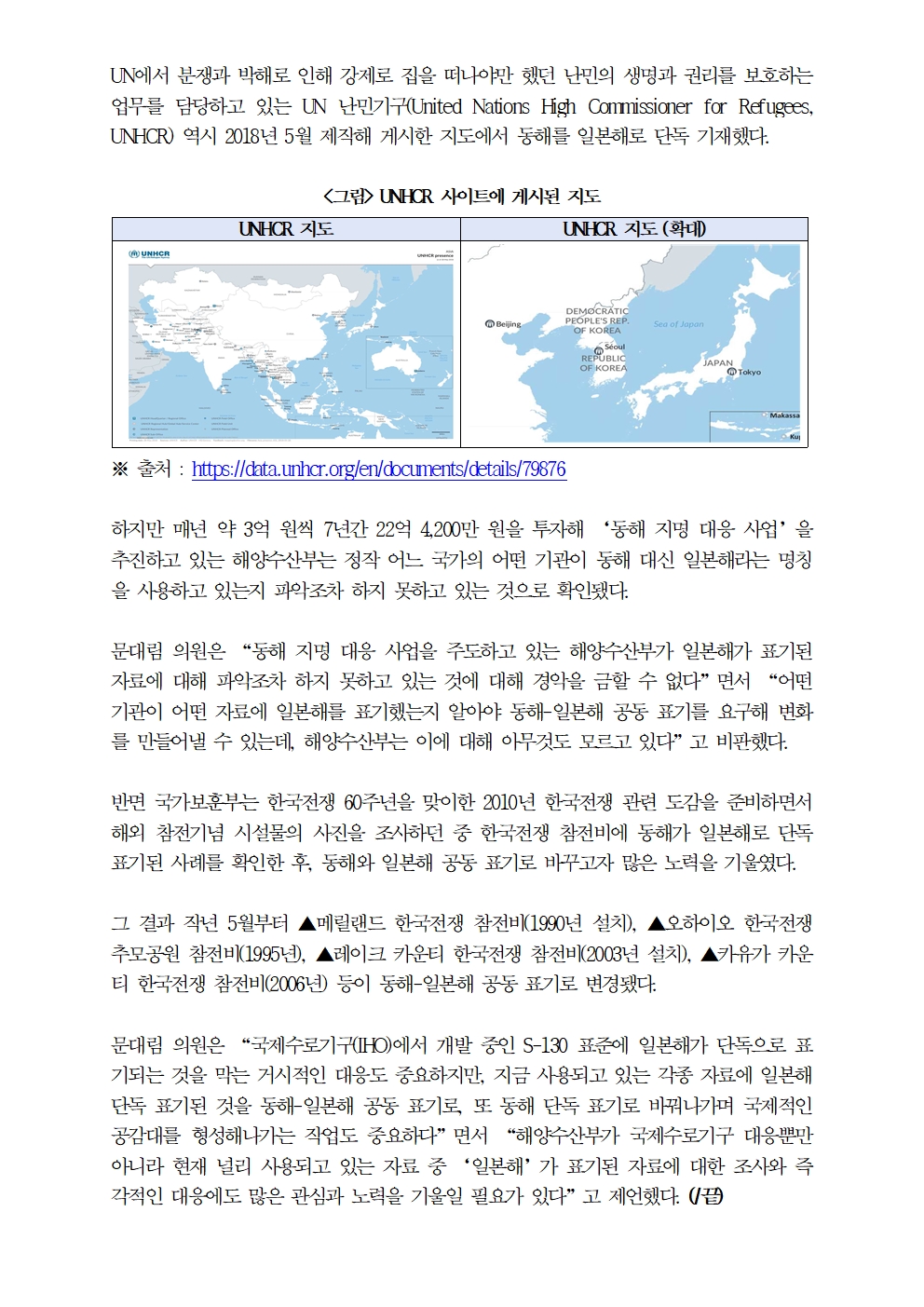 [문대림 의원 보도자료 - 해양수산부] 동해지명 대응에 22억 쓴 해수부 ‘일본해 표기 현황 모른다.hwp