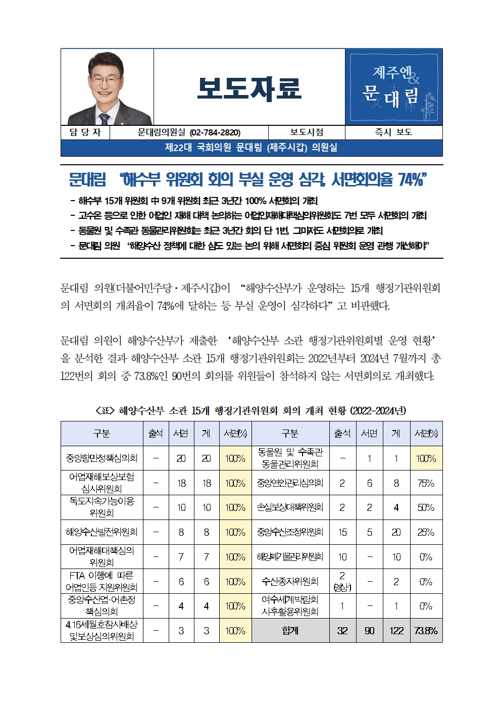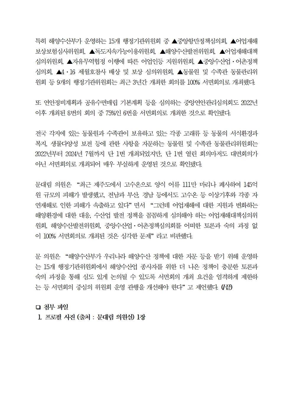 [문대림 의원 보도자료 - 해양수산부] 해수부 위원회 부실 운영 심각 서면회의율 74%.hwp