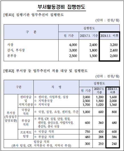 1. KBS 간부 및 고위직 업무추진비 규정 전문 – 부서활동경비 집행한도