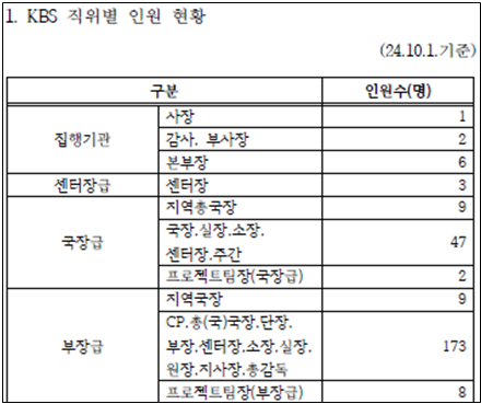 3. KBS 간부 및 고위직 인원 현황 (KBS 제출)