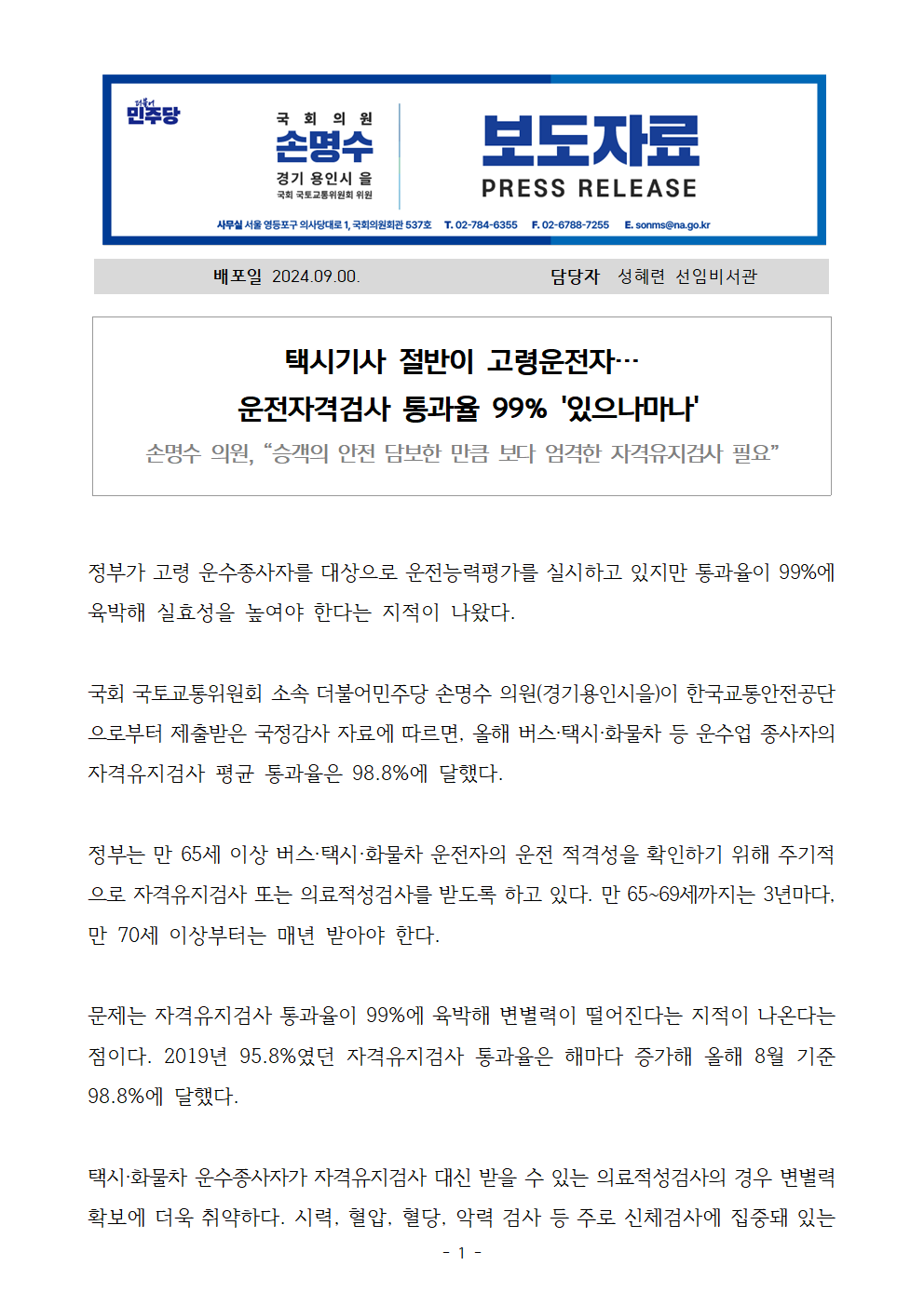 241010_손명수의원실_보도자료_택시기사운전자격검사통과율99%.hwp