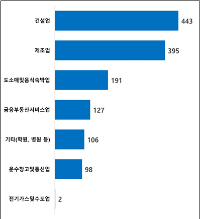 | 건설업 | 377 | 59 | 3 | 3 | 1 | 443 |