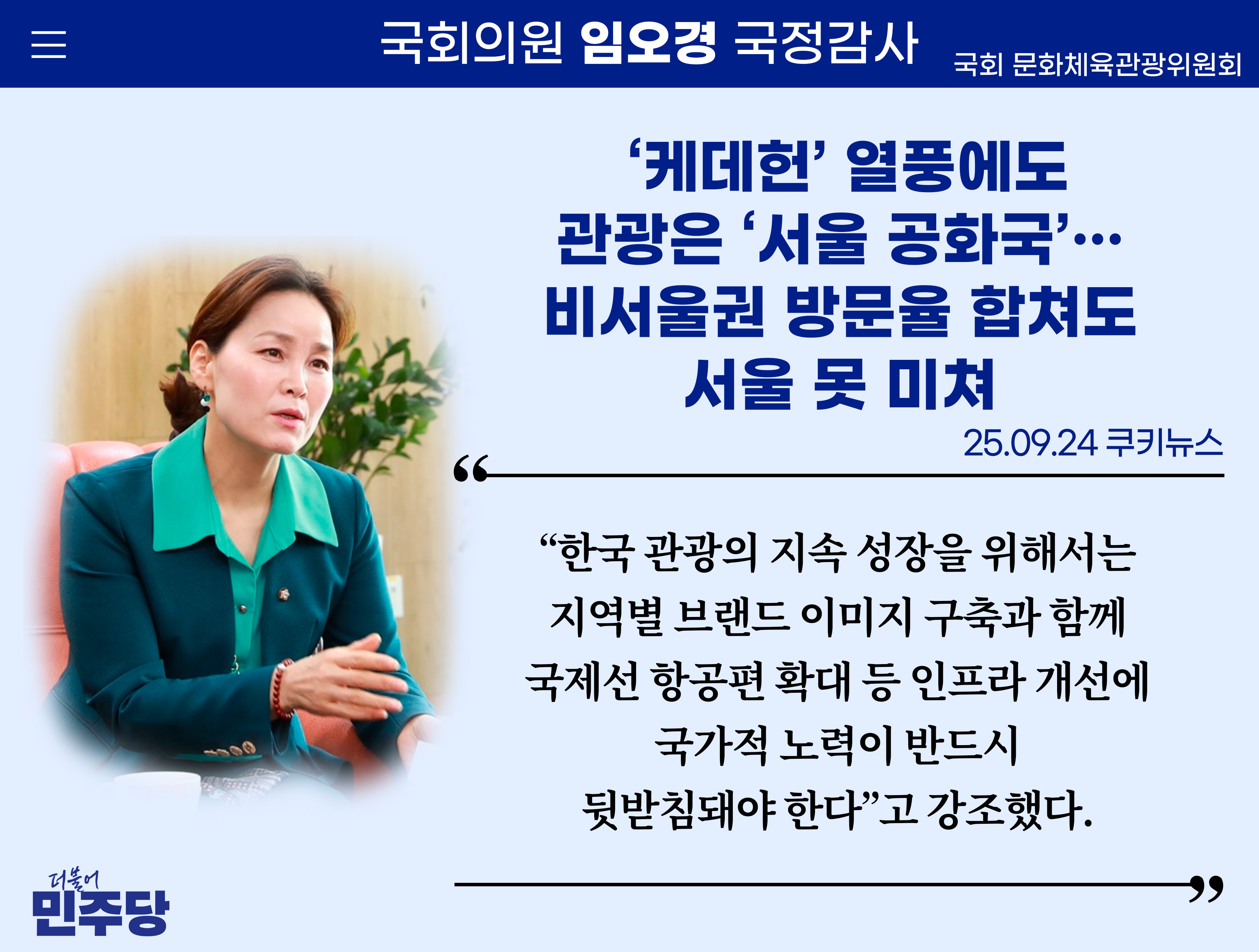 [임오경 카드뉴스]쿠키뉴스 / [단독] ‘케데헌’ 열풍에도 관광은 ‘서울 공화국’…비서울권 방문율 합쳐도 서울 못 미쳐