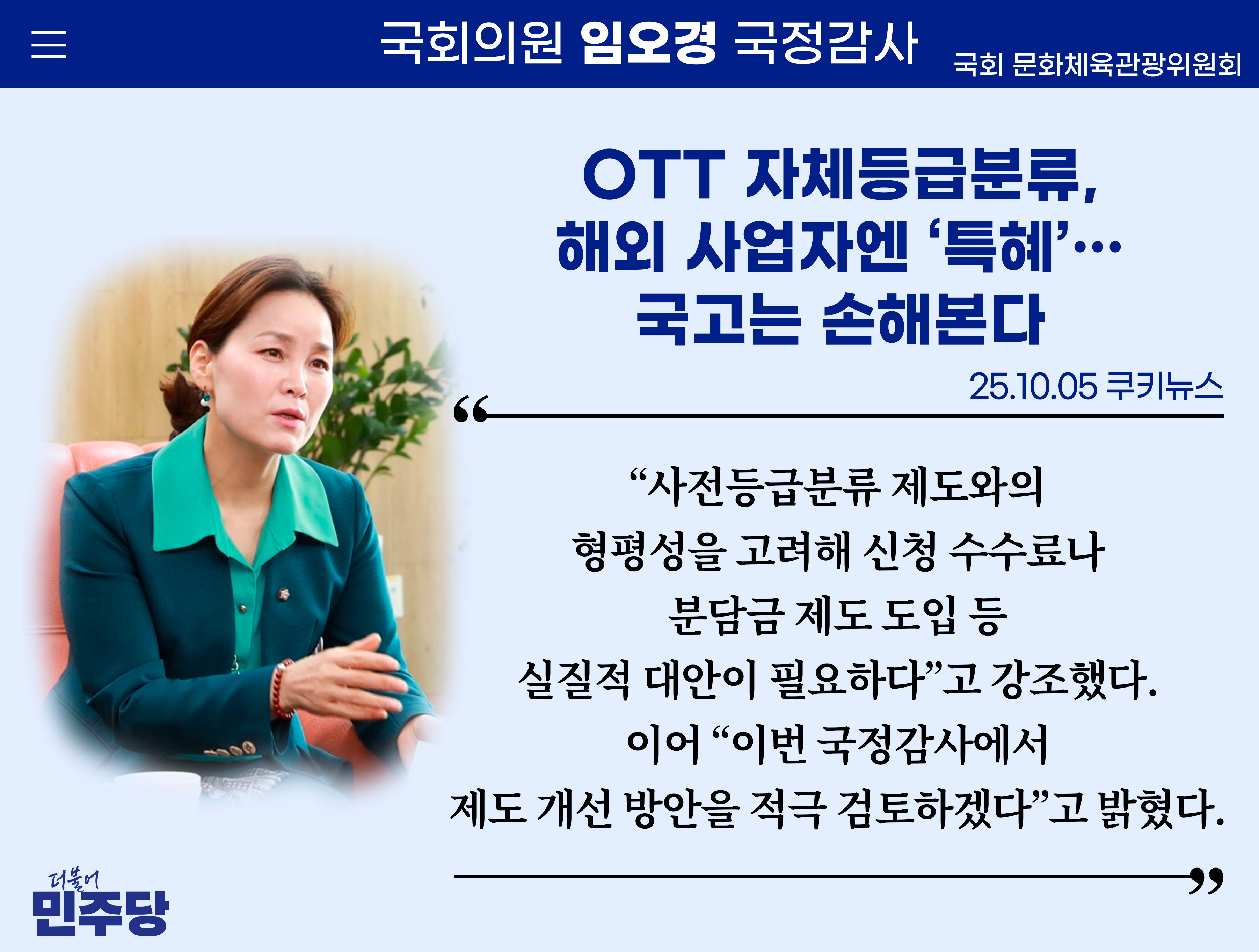 [임오경 카드뉴스]쿠키뉴스 / OTT 자체등급분류, 해외 사업자엔 ‘특혜’…국고는 손해본다