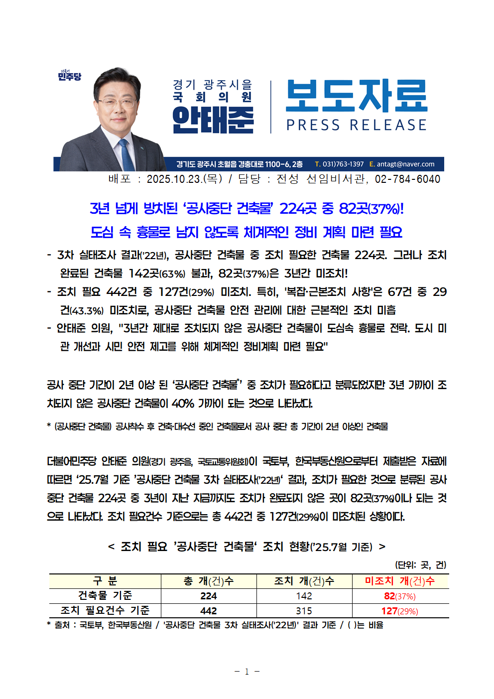 251023_안태준_의원_보도자료_2_3년_넘게_방치된_‘공사중단_건축물’_224곳_중_82곳37%!.hwp